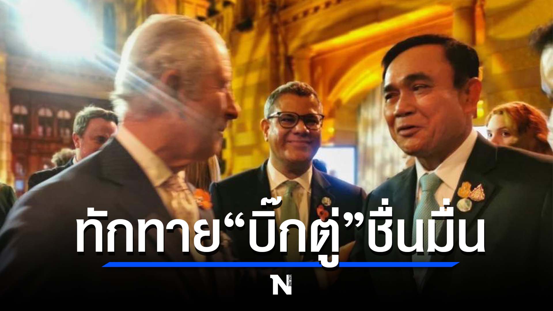 สำนักนายก ฯ เจ้าฟ้าชายชาร์ลส์มกุฎราชกุมารอังกฤษ ทรงทักทาย อย่างเป็นกันเองและทรงจับแขน พล.อ.ประยุทธ์ จันทร์โอชา นายกรัฐมนตรีและรัฐมนตรีว่าการกระทรวงกลาโหมในงานเลี้ยงรับรอง COP 26ที่Glasgow, Scotland