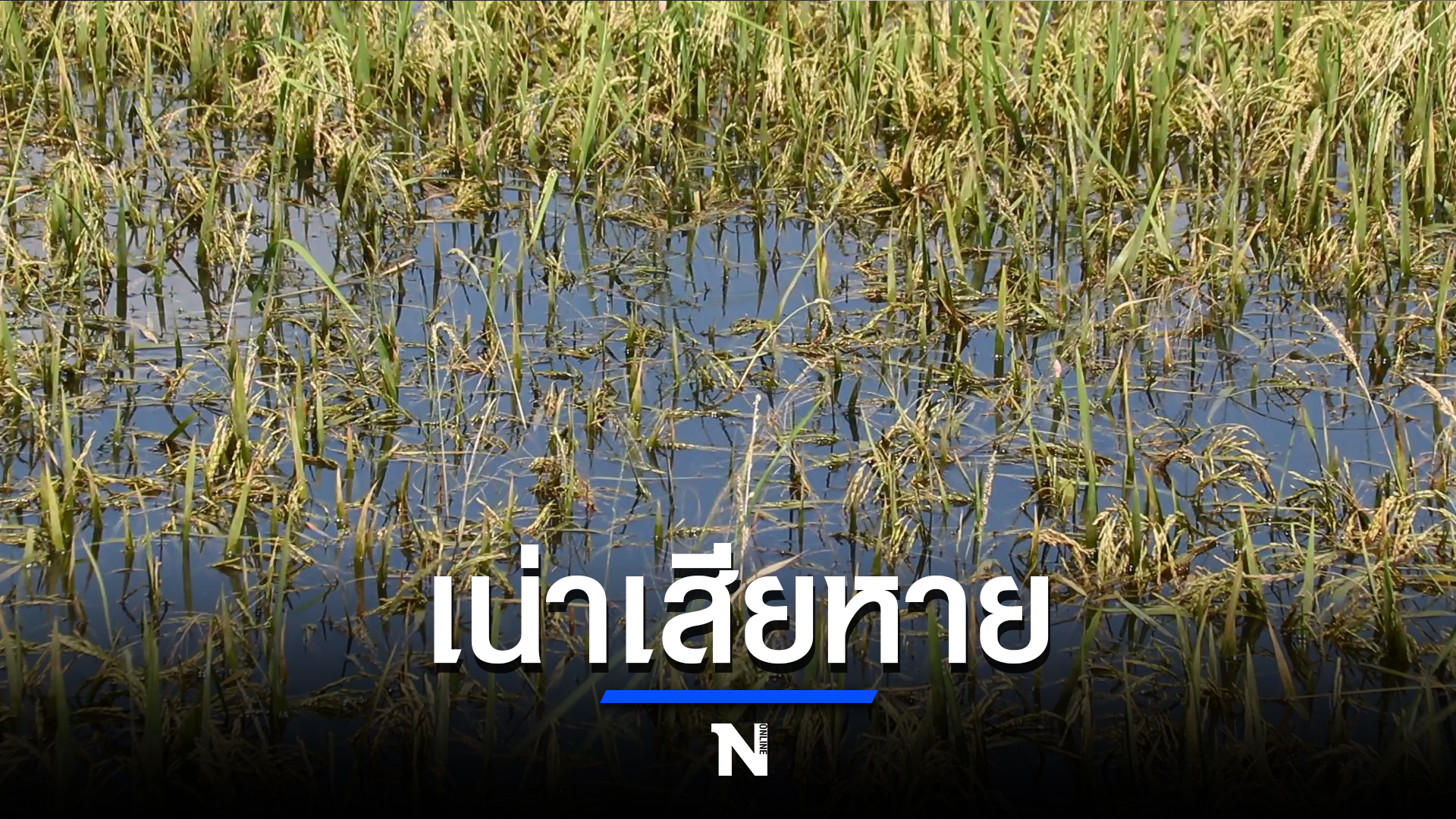 น้ำท่วมลดระดับ-พบนาข้าวเน่าเสียเก็บเกี่ยวไม่ได้