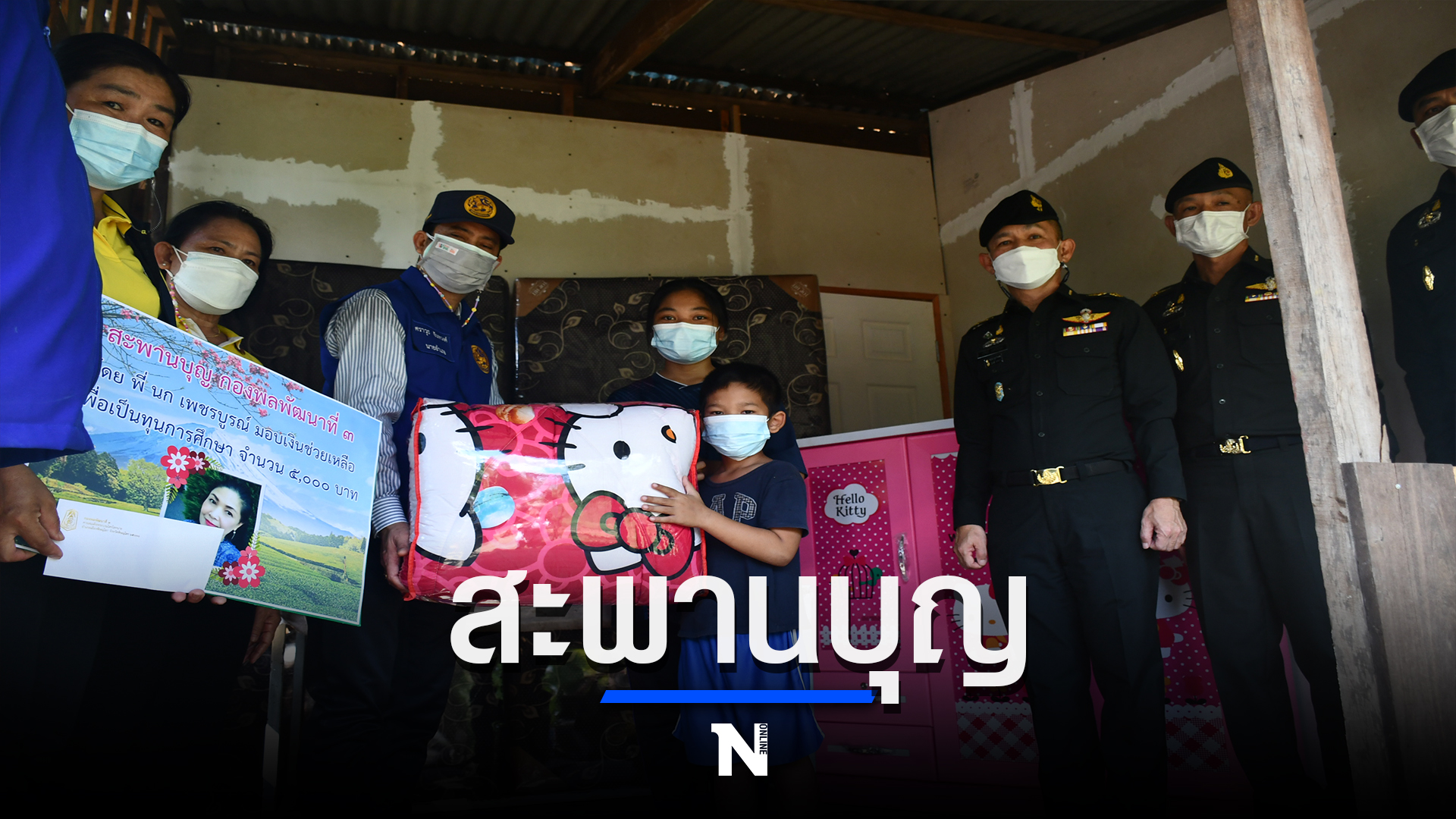 โดย พล.ต.ทวีศักดิ์ พร้อมด้วย พ.อ.สมใจ คิดเกื้อการุญ รอง ผบ. พ.อ.รุ่งเพชร คนทัด เสนาธิการพลพัฒนาที่ 3 ได้เดินทางไปที่บ้านของสองหนูน้อย เพื่อนำสิ่งของเครื่องใช้ภายในบ้านที่ได้รับการบริจาคของคุณนก ที่อยู่ที่ประเทศญี่ปุ่น ซึ่งมีอุปกรณ์เครื่องใช้ภายในบ้าน อาทิ ที่นอน หมอน ผ้าห่ม ตู้ใส่เสื้อผ้า พร้อมกับเงินทุนการศึกษา อีก 5,000 บาท และตะกร้าปันใจให้กับ ครอบครัว โดยมีว่าที่ ร.ต.ศราวุธ จันทงวศ์ นายอำเภอวัดโบสถ์ ผู้นำชุมชนท้องถิ่น ผู้ใหญ่บ้าน และหน่วยงานที่เกี่ยวข้อง ร่วมมอบสิ่งของต่างๆให้กับสองพี่น้อง พร้อมกันนี้ทาง ผบ.พลพัฒนาที่ 3 ได้มอบเงินสนับสนุนช่วยเหลืออีกจำนวนหนึ่ง