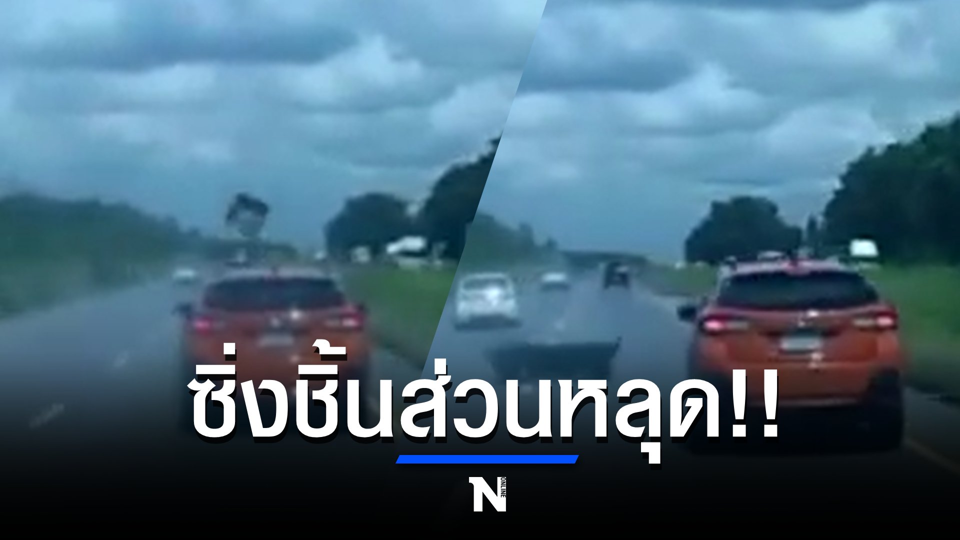 กระทั่งอยู่ดีๆ มีชิ้นส่วนโรลบาร์ท้ายรถกระบะ ปลิวหลุดออกมา จนรถต้องรีบหักหลบกันจ้าละหวั่น แต่โชคดีที่ไม่เกิดอุบัติเหตุซ้ำซ้อน ส่วนรถกระบะ
