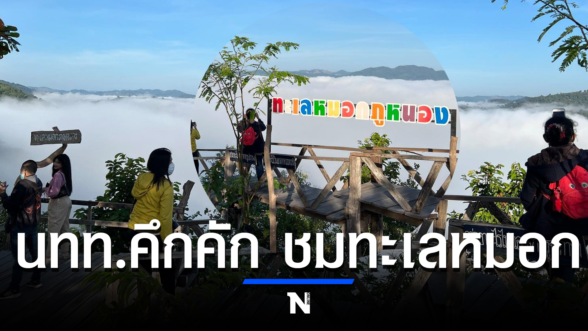 ก่อนหมอกจะจับตัวกันหนาแน่นและลอยต่ำลงเป็นทะเลที่สวยงาม ซึ่งนักท่องเที่ยวได้ขึ้นไปถ่ายภาพที่ระลึกบนสะพานไม้ที่รอบภูสูงที่ยาวที่สุดในจังหวัดหนองคาย ยาวกว่า 50 เมตร ที่ยื่นออกไปจนได้ใกล้ชิดกับทะเลหมอกที่เกิดขึ้น ก่อนจะส่งภาพที่ถ่ายผ่านโลกโซเชียลต่อไป