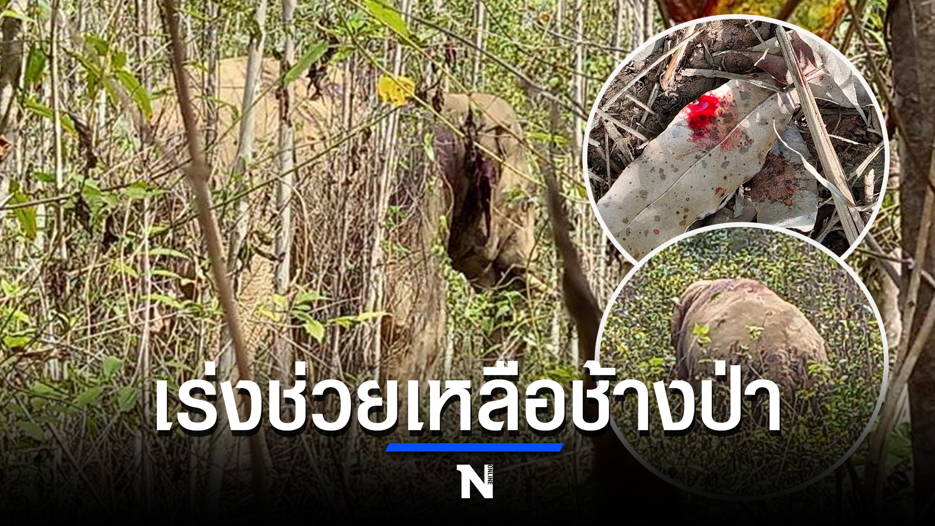 จากการเข้าตรวจสอบพื้นที่ พบช้างป่าเพศผู้ อายุประมาณ 30 ปี จากการเฝ้าสังเกตุพบว่าช้างดังกล่าง ได้รับบาดเจ็บบริเวณ โคนหาง หลังสองข้าง และ ลำคอ กลางงวง เบื้องต้นได้ประสานหมอสัตวแพทย์เพื่อประเมินอาการ และทำการรักษาแล้ว