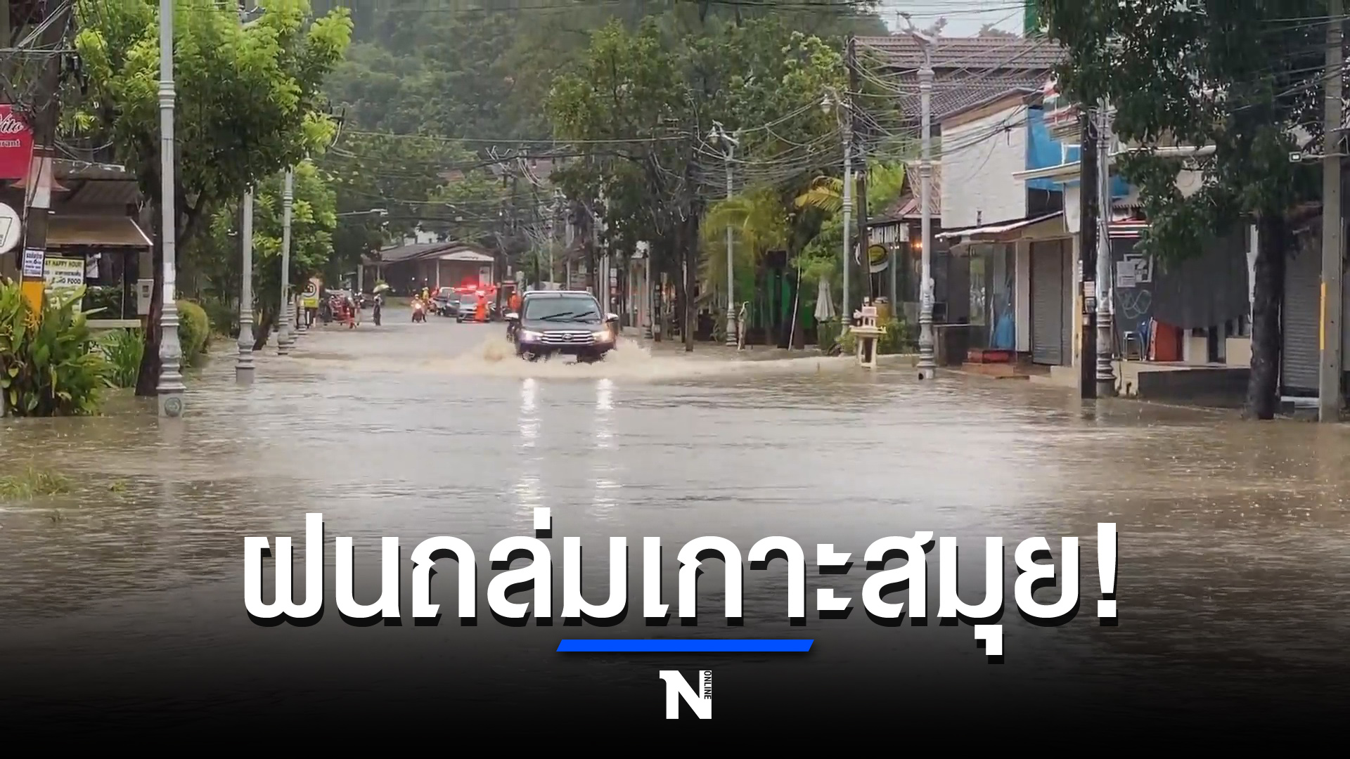 ฝนกระหน่ำเกาะสมุย! น้ำระบายไม่ทันท่วมถนนหลายจุด