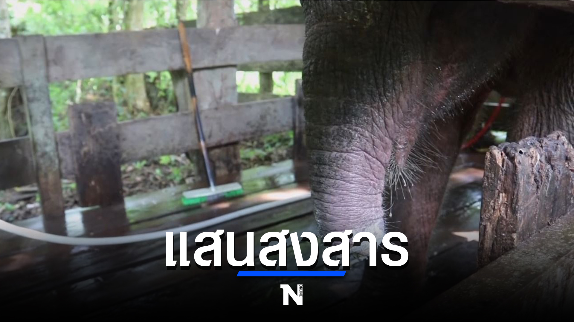 เชื่อกันว่า ลูกช้างถูกโขลงของมันทิ้ง เนื่องจากสภาพของมันทรุดโทรมลงมาก