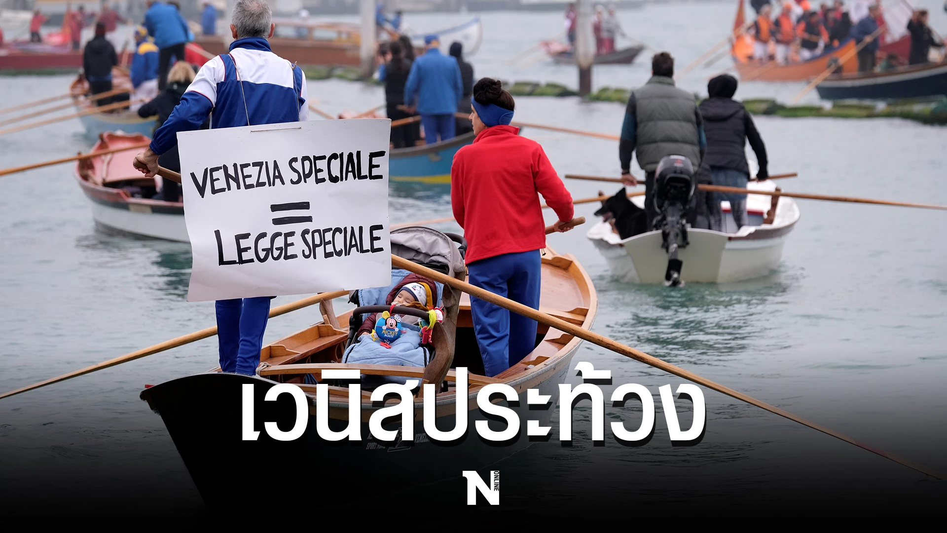 กลุ่มผู้ประท้วงหลายร้อยคนบนเรือพายลำเล็ก ๆ พากันมารวมตัวเมื่อวันเสาร์ ( 20 พฤศจิกายน ) ที่อ่าว " เวเนเชียน ลากูน " เพื่อประท้วง "การขนส่งทางน้ำที่ไม่ยั่งยืน" ซึ่งพวกเขาหมายถึงบรรดาเรือขนาดใหญ่ที่แล่นขึ้นล่องผ่านลากูนและแกรนด์ คาแนล ของเมืองเวนิส ในอิตาลี