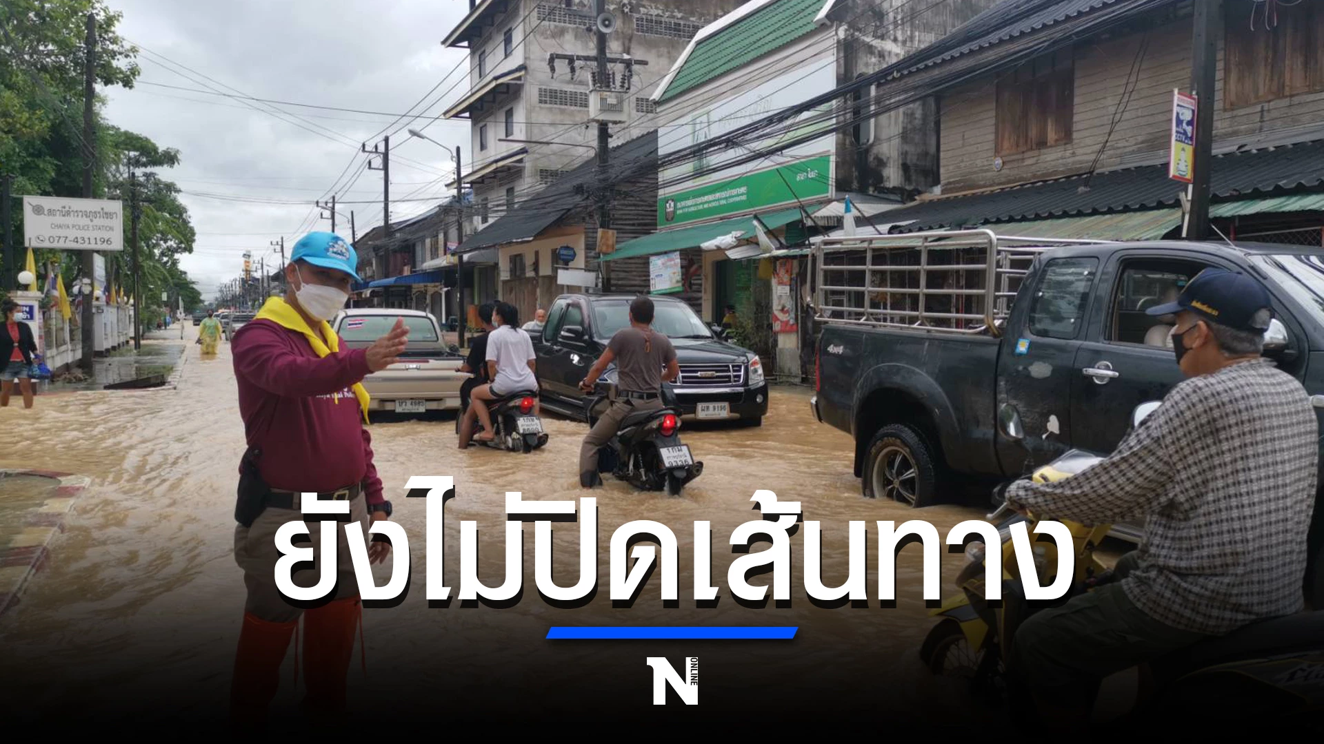 บริเวณหน้า สถานีตำรวจภูธรอำเภอไชยา และหน้าที่ว่าการอำเภอไชยา โดยน้ำท่วมสูงบริเวณบนถนน ระดับน้ำสูงประมาณ 20-30 ซม.ทำให้การสัญจรไปมาบนถนนเส้นหลักเป็นไปด้วยความยากลำบาก แต่ยังไม่มีการปิดกั้นเส้นทาง โดยมีเจ้าหน้าที่ตำรวจและจิตอาสาคอยอำนวยความสะดวกให้กับประชาชนที่สัญจรไปมา และมาติดต่อราชการ