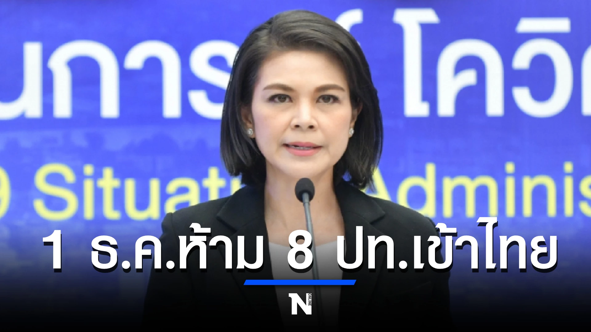 อนุญาตให้ประชาชนจาก 8 ประเทศนี้ ลงทะเบียนเพื่อขอเข้าราชอาณาจักรไทย แต่มีคนกลุ่มหนึ่งที่ลงทะเบียนล่วงหน้า จะเข้าสู่กระบวนการต้องมีการกักตัว 14 วัน ตรวจ RT-PCR 3 ครั้ง คือ เดินทางมาถึง ซ้ำวันที่ 5-6 และก่อนออกจากการกักตัว 12-13 มีการประกาศเพิ่มใน กลุ่ม 8 ประเทศนี้ หลังวันที่ 1 ธันวาคม ห้ามไม่ให้มีการเดินทางเข้าประเทศไทย ยกเว้นเฉพาะคนไทย