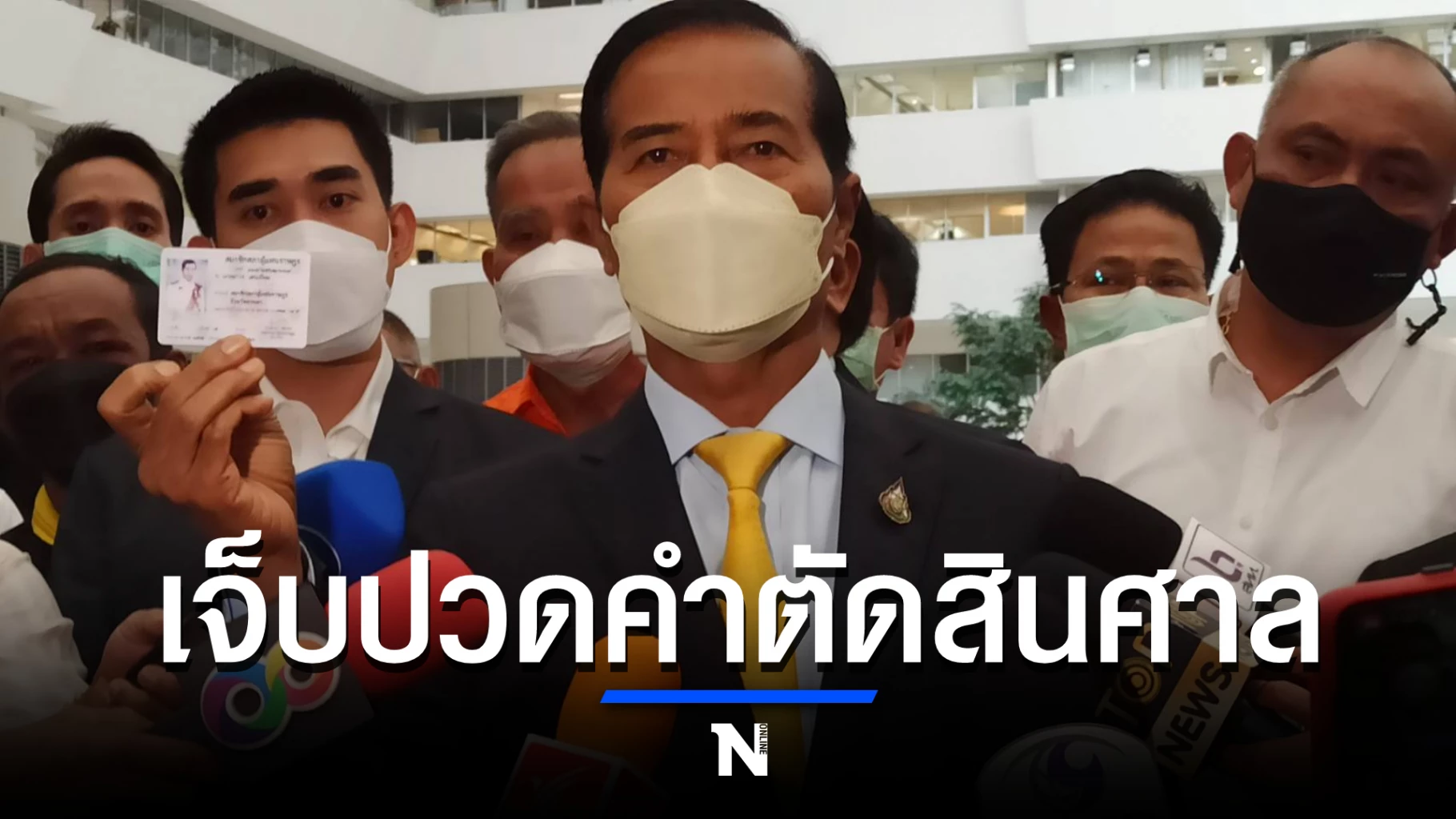 "ด้วยน้ำตาตกใน ด้วยอกระทม ด้วยความเจ็บปวด ที่ไม่มีคำบรรยายใดๆ ทั้งสิ้น ที่จะบอกพี่น้องประชาชนพรรคประชาธิปัตย์ บอกกรรมการบริหาร บอกบรรพบุรุษของพรรคประชาธิปัตย์ว่า ผมสิ้นแล้ว สิ้นเกียรติยศที่จะเป็นสมาชิกพรรค ด้วยคำวินิจฉัยของศาลรัฐธรรมนูญ ต้องกราบขออภัยที่ทำให้พรรคมัวหมอง ขอกราบขอโทษผู้หลักผู้ใหญ่ของพรรคที่ทำให้ท่านผิดหวัง"