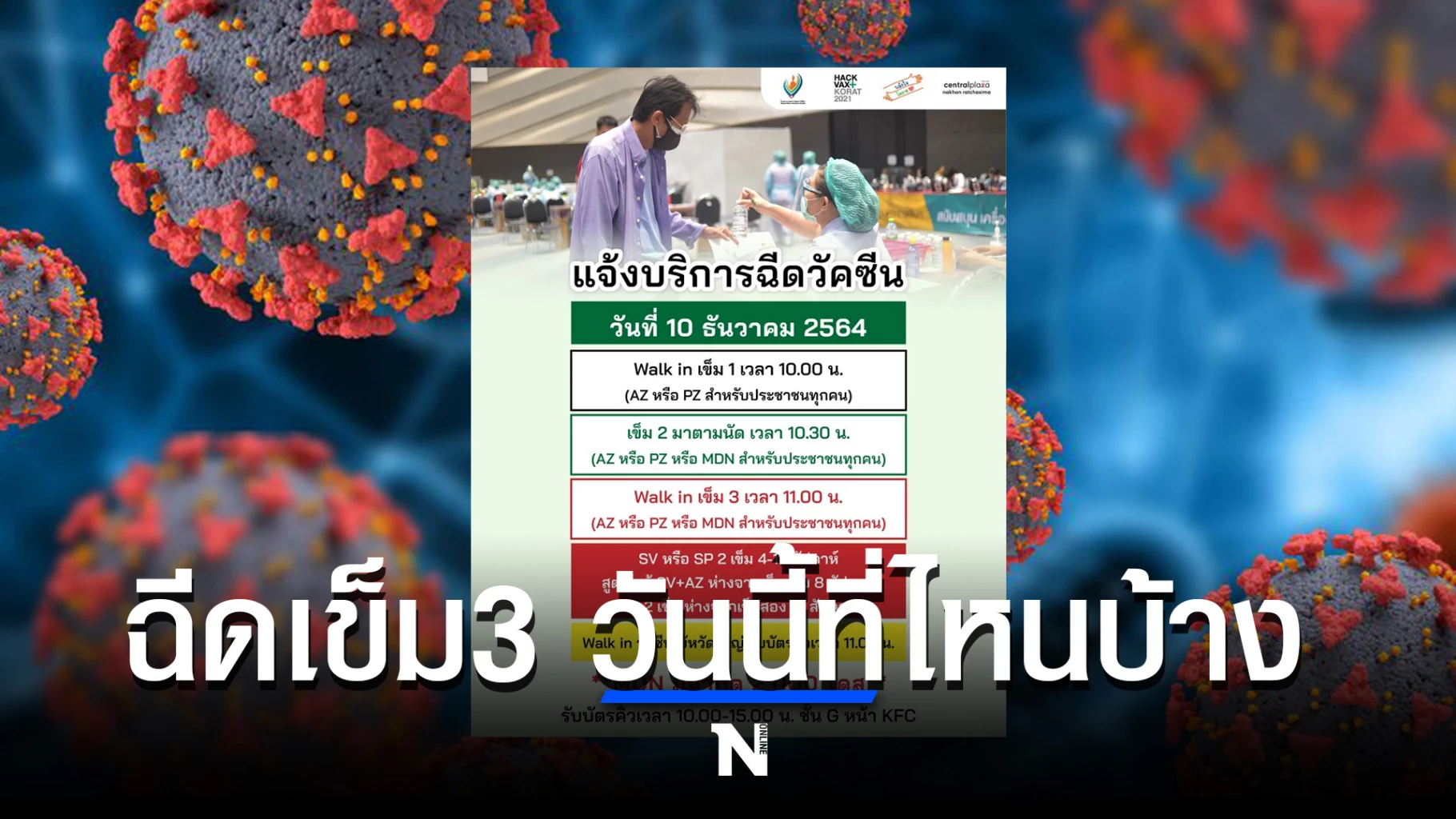 แจ้งบริการฉีดวัคซีนในวันที่ 10 ธันวาคม 2564 เปิด Walk In ดังนี้