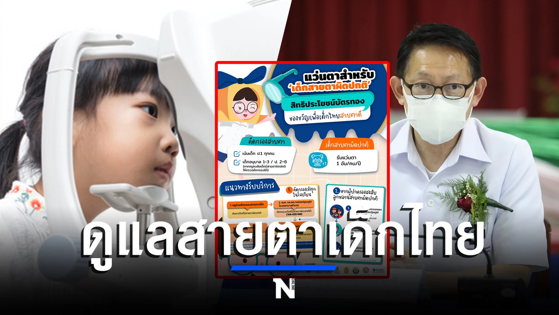 นพ.จเด็จ กล่าวอีกว่า เพื่อให้เกิดการเข้าถึงสิทธิประโยชน์บริการแว่นตาสำหรับเด็กที่มีภาวะสายตาผิดปกติ สปสช. มีการประชุมร่วมกับผู้แทนหน่วยงานที่เกี่ยวข้อง และดำเนินการตามแนวทางที่กรมอนามัยกำหนด คือ จัดบริการเชิงรุกในโรงเรียน เน้นการคัดกรองสายตาเด็กนักเรียนชั้นประถมปีที่ 1 โดยครูจะทำหน้าที่คัดกรองสายตาเบื้องต้นและเจ้าหน้าที่สาธารณสุขจาก รพ.สต.หรือโรงพยาบาลตรวจคัดกรองนักเรียนที่ครูพบผิดปกติซ้ำ