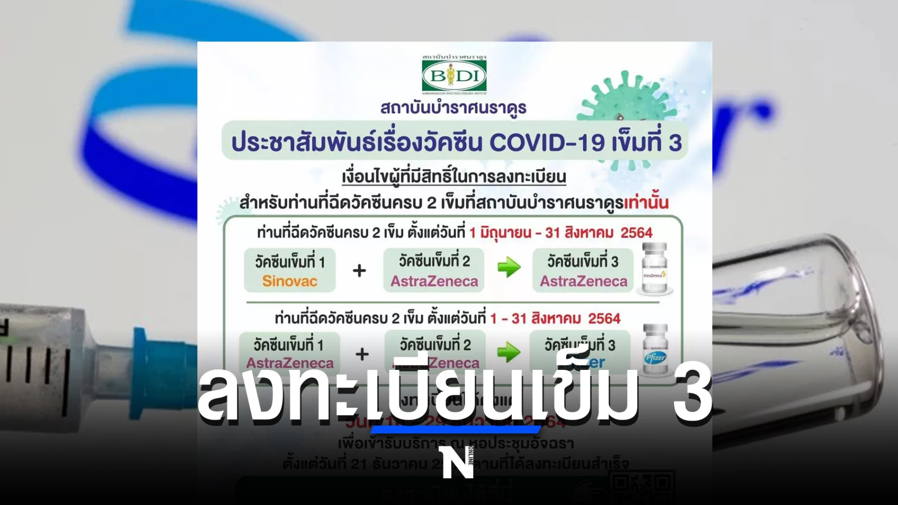 เพจเฟซบุ๊ก ไทยรู้สู้โควิด โพสต์ข่าวดี สายตรงส่งจาก สถาบันบำราศนราดูร ฝากข่าวประชาสัมพันธ์การฉีดวัคซีนโควิด-19 เข็มที่ 3