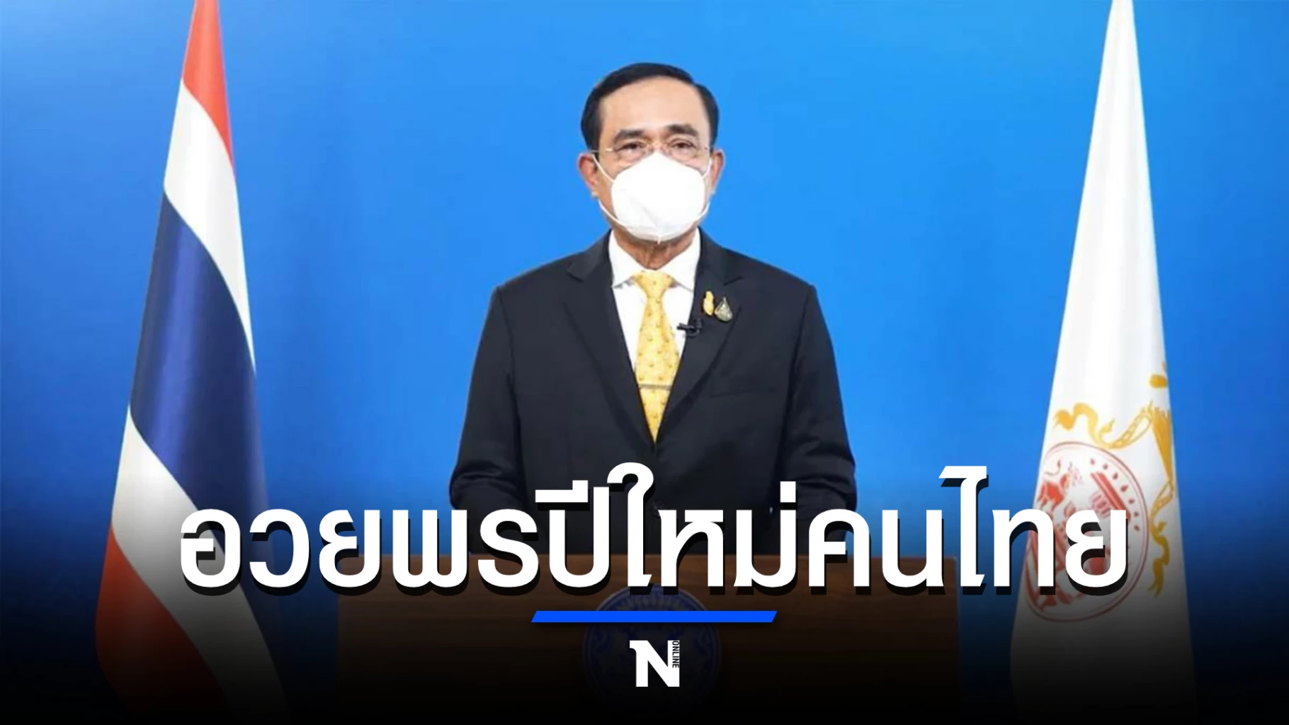 “เนื่องในวาระวันขึ้นปีใหม่ 2565 ผมขออัญเชิญอำนาจสิ่งศักดิ์สิทธิ์ อีกทั้งเดชะพระบารมี แห่งองค์พระบาทสมเด็จพระเจ้าอยู่หัว และสมเด็จพระนางเจ้าพระบรมราชินี โปรดดลบันดาลประทานพรให้ประชาชนคนไทยทุกคน ประสบแต่สิ่งอันเป็นมงคล ปราศจากโรคภัยไข้เจ็บและภัยอันตรายทั้งปวง มีพลังกายพลังใจที่เข้มแข็งและสัมฤทธิ์ผลในสิ่งพึงปรารถนาทุกประการโดยทั่วกัน สวัสดีปีใหม่ 2565 ” พล.อ.ประยุทธ์ กล่าว