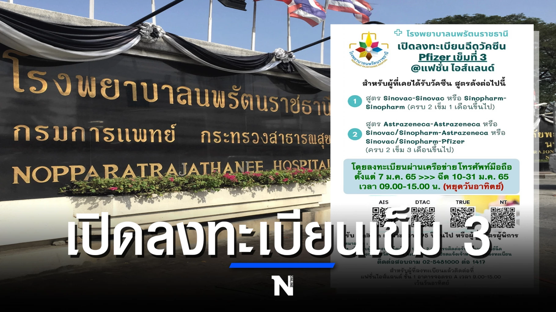 โรงพยาบาลนพรัตนราชธานี เปิดลงทะเบียนฉีดวัคซีน Pfizer เข็มที่ 3 ที่ แฟชั่น ไอส์แลนด์ สำหรับผู้ที่เคยได้รับวัคซีน สูตรดังต่อไปนี้