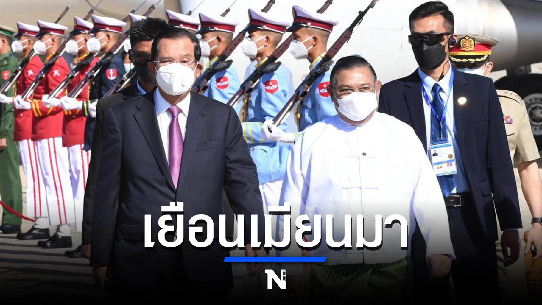 นายกรัฐมนตรีฮุน เซน เดินทางถึงสนามบินในกรุงเนปิดอว์ของเมียนมาในวันนี้ เพื่อเริ่มต้นการเยือนนานสองวัน โดยมีวันนา หม่อง ละวิน รัฐมนตรีต่างประเทศเมียนมาให้การต้อนรับ และผู้นำกัมพูชาได้มอบหน้ากากและอุปกรณ์ทางการแพทย์กว่า 2 ล้านชิ้นให้กับรัฐบาลเมียนมา ซึ่งเป็น การมอบความช่วยเหลือครั้งที่ 3 แก่เมียนมาเพื่อต่อสู้กับโควิด-19