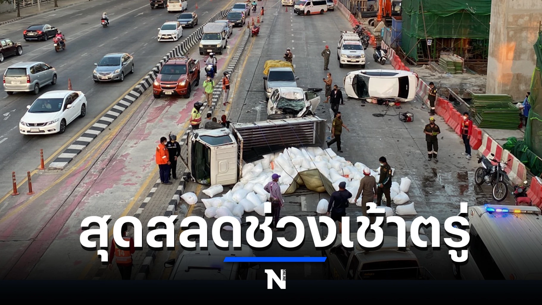 ที่เกิดเหตุบริเวณเชิงสะพานข้ามแยกแคราย ใกล้กับห้างเอสพานาด พบรถบรรทุกน้ำแข็ง 6 ล้อ พลิกตะแคงถุงน้ำแข็งกระจายเกลื่อนพื้นถนน ถัดไปเป็นรถเก๋งโตโยต้า คัมรี่ สีขาว สภาพด้านหน้าพังยับเยิน ห่างออกไปพบรถกระบะบรรทุกน้ำแข็งนิสสัน ใกล้กันยังรถเก๋ง โตโยต้า วีออส สีขาว พลิกตะแคง คนขับเป็นผู้หญิงเสียชีวิตอยู่ภายในรถ