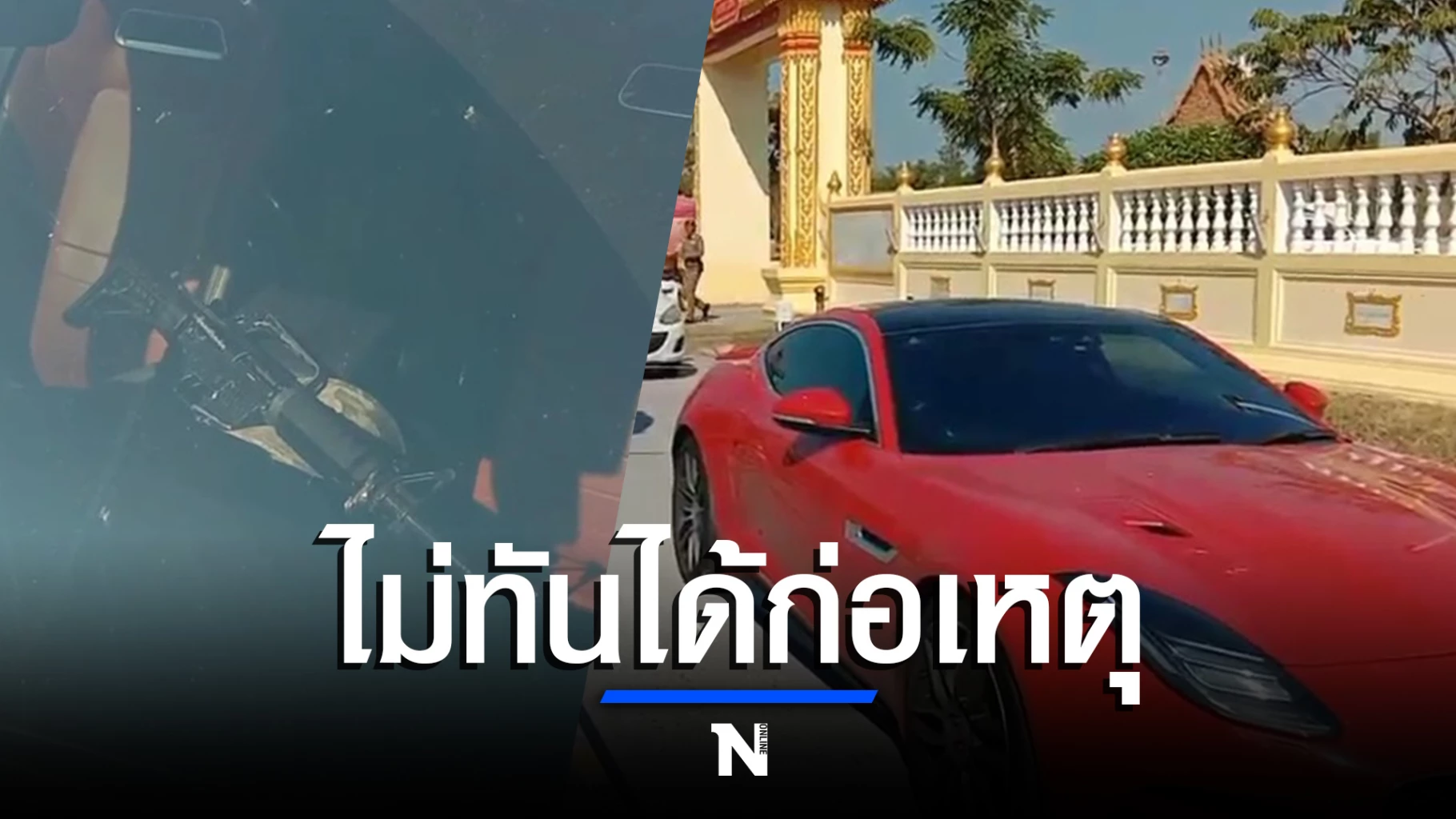 หนุ่มบางตะบูนขับเก๋งสปอร์ต-ควง M16 หวังเคลียร์ปัญหา แต่ถูก จยย.เฉี่ยวชน