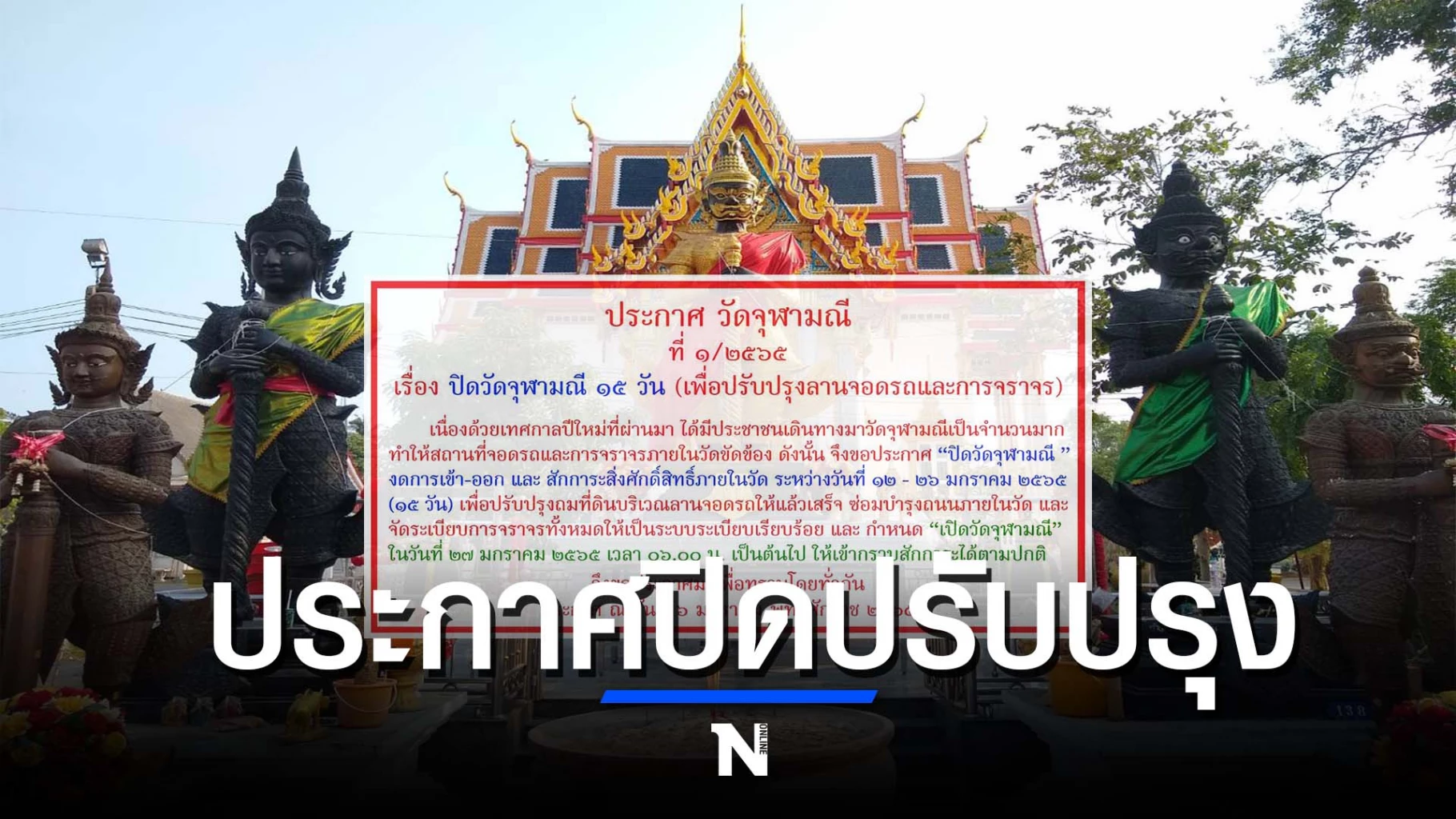 (15 วัน) เพื่อปรับปรุงถมที่ดินบริเวณลานจอดรถให้แล้วเสร็จ ซ่อมบำรุงถนนภายในวัด และจัดระเบียบการจราจรทั้งหมดให้เป็นระบบระเบียบเรียบร้อย และ กำหนด "เปิดวัดจุฬามณี" ในวันที่ 27 มกราคม 2565 เวลา 06.00 น. เป็นต้นไป ให้เข้ากราบสักการะได้ตามปกติ จึงขอประกาศมาเพื่อทราบโดยทั่วกัน
