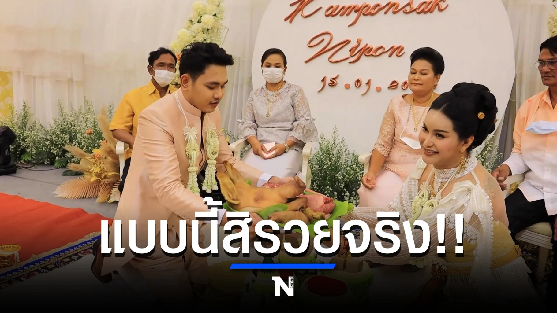 โดยเจ้าบ่าว นายนิพนธ์ เปิดเผยว่า สาเหตที่นำเอาหัวหมูเป็นสินสอดทองหมั้นนั้น ก็เพราะว่าอยากให้พ่อแม่ของเจ้าสาวมั่นใจในตัวผมว่า สามารถดูแลเจ้าสาวได้ ไม่ว่าจะเป็นเงินทอง หรือแม้กระทั่งหมูที่ในตอนนี้ราคาแพงที่สุด ตนก็สามารถหามาให้เขาได้