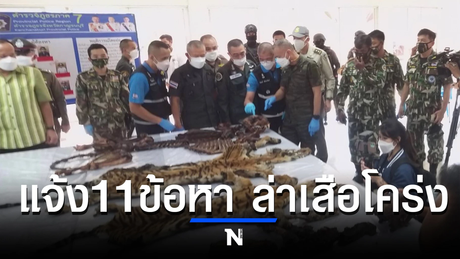 พร้อมของกลาง 1.ซากเสือโคร่ง จำนวน 2 ซาก น้ำหนัก 52.5 กก. 2.อาวุธปืนลูกซองยาว จำนวน 1 กระบอก 3. อาวุธปืนยาวขนาด.22 ติดกล้องเล็ง จำนวน 1 กระบอก 4.อาวุธปืนไทยประดิษฐ์ (ปืนแก๊ป) จำนวน 2 กระบอก 5.กระสุนปืนขนาด.22 จำนวน 50 นัด 6.ปลอกกระสุนปืนลูกซองจำนวน 5 ปลอก