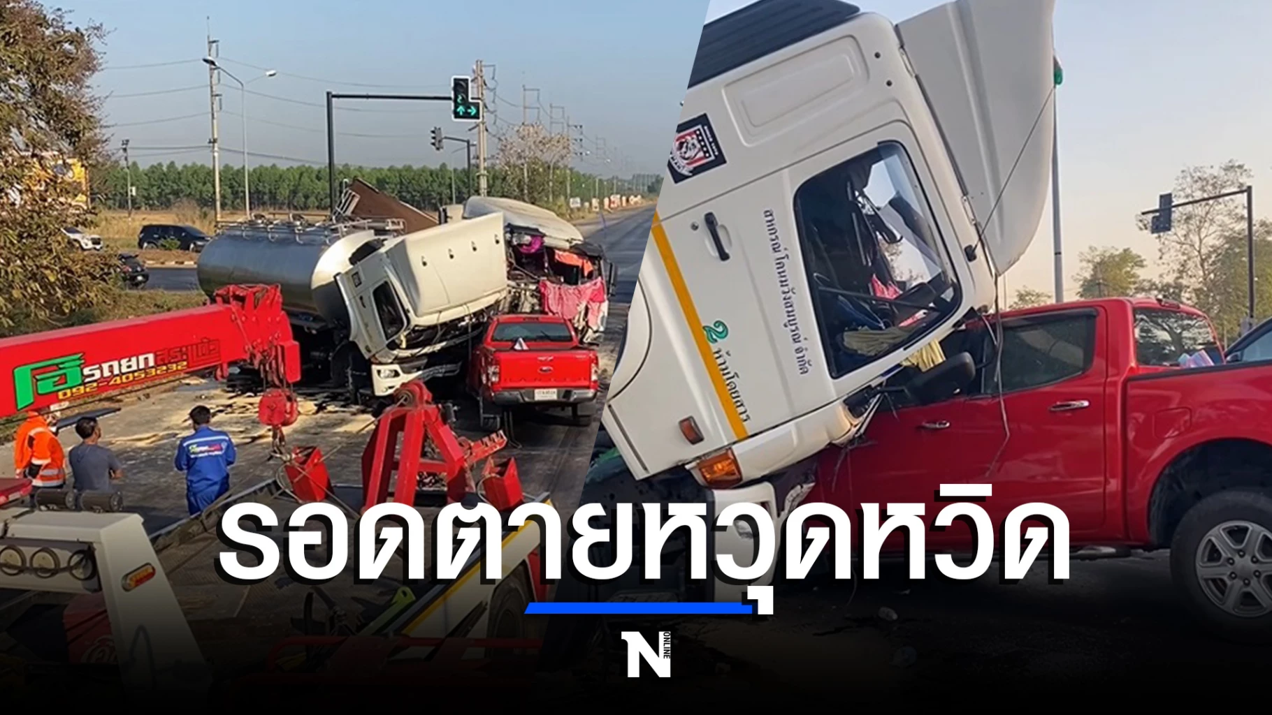 น.ส.ภัทรจิตร์ รอว์ลิงก์ อายุ 56 ปี ชาว จ.จันทบุรี คนขับรถยนต์เก๋ง เล่าว่า หลังจากกลับไปเยี่ยมคุณพ่อที่บ้าน จ.จันทบุรี และกำลังจะกลับ จ.เชียงใหม่ ได้ขับออกมาจากบ้านเมื่อเวลา 04.00 น.ก่อนจะมาถึงที่เกิดเหตุเวลา ประมาณ 05.30 น. ขณะนั้นจอดติดไฟแดงอยู่กับรถยนต์กระบะ และก็มีรถบรรทุกนมวิ่งมาจากตัวเมืองสระแก้ว มุ่งหน้า อ.เขาฉกรรจ์ ทันใดนั้นเป็นจังหวะที่รถบรรทุกพ่วงวิ่งมาจากทาง อ.วัฒนานคร และได้ผ่าสัญญาณไฟแดงพุ่งเข้าชนกันอย่างจัง และรถพ่วงได้ไถลมาชนกับรถตนและรถข้าง ๆ จนรถทั้งหมดพังเสียหายอย่างที่เห็น โชคดีที่ไม่ได้รับบาดเจ็บ แต่ก็ตกใจมาก และเหตุการณ์นี้มันเกิดขึ้นอย่างรวดเร็วเสี้ยววินาทีมาก ๆ
