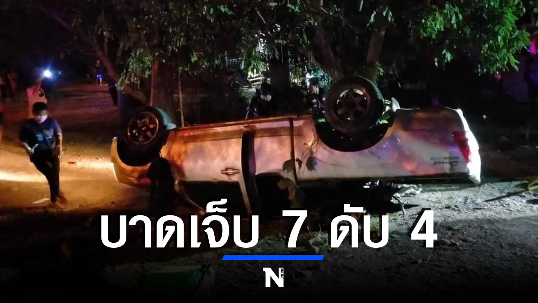 ที่เกิดเหตุ พบเป็นรถกระบะอีซูซุ ดีแม็กซ์ สีเทา ทะเบียน บบ 4546 กาญจนบุรี เฉี่ยวชนกับรถบรรทุก ทะเบียน 81-5575 สมุทรปราการ แล้วเสียหลักพลิกคว่ำลงข้างทาง