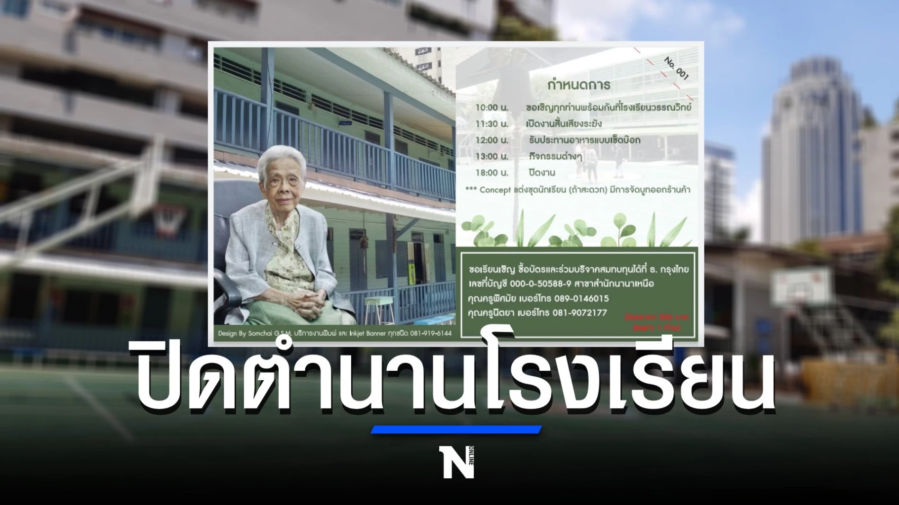 “พบกันอีกสักครั้งหนึ่ง เราจะคิดถึงกันตลอดไปนะคะ เรียนเชิญทั้งศิษย์เก่า หรือที่ไม่ใช่ศิษย์เก่าก็มาได้ค่ะ ปฏิบัติตามมาตรการป้องกันโรคโควิด แล้วมาพบกันที่โรงเรียนวรรณวิทย์ ใครไม่สะดวกสามารถสมทบทุน เพื่อส่งมอบให้คุณครูแทนคำขอบคุณครั้งสุดท้าย”