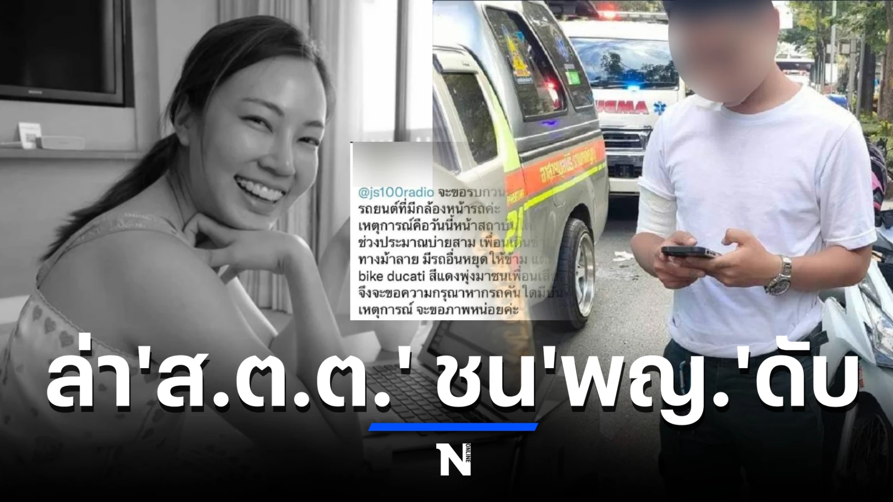 โดยระบุเหตุการณ์ "เพื่อนเดินข้ามทางม้าลาย มีรถอื่นหยุดให้ข้าม แต่มี big bike ducati สีแดง พุ่งมาชนเพื่อนเสียชีวิตค่ะ จึงจะขอความกรุณาหากรถคันใดมีบันทึกเหตุการณ์ จะขอภาพหน่อยค่ะ"