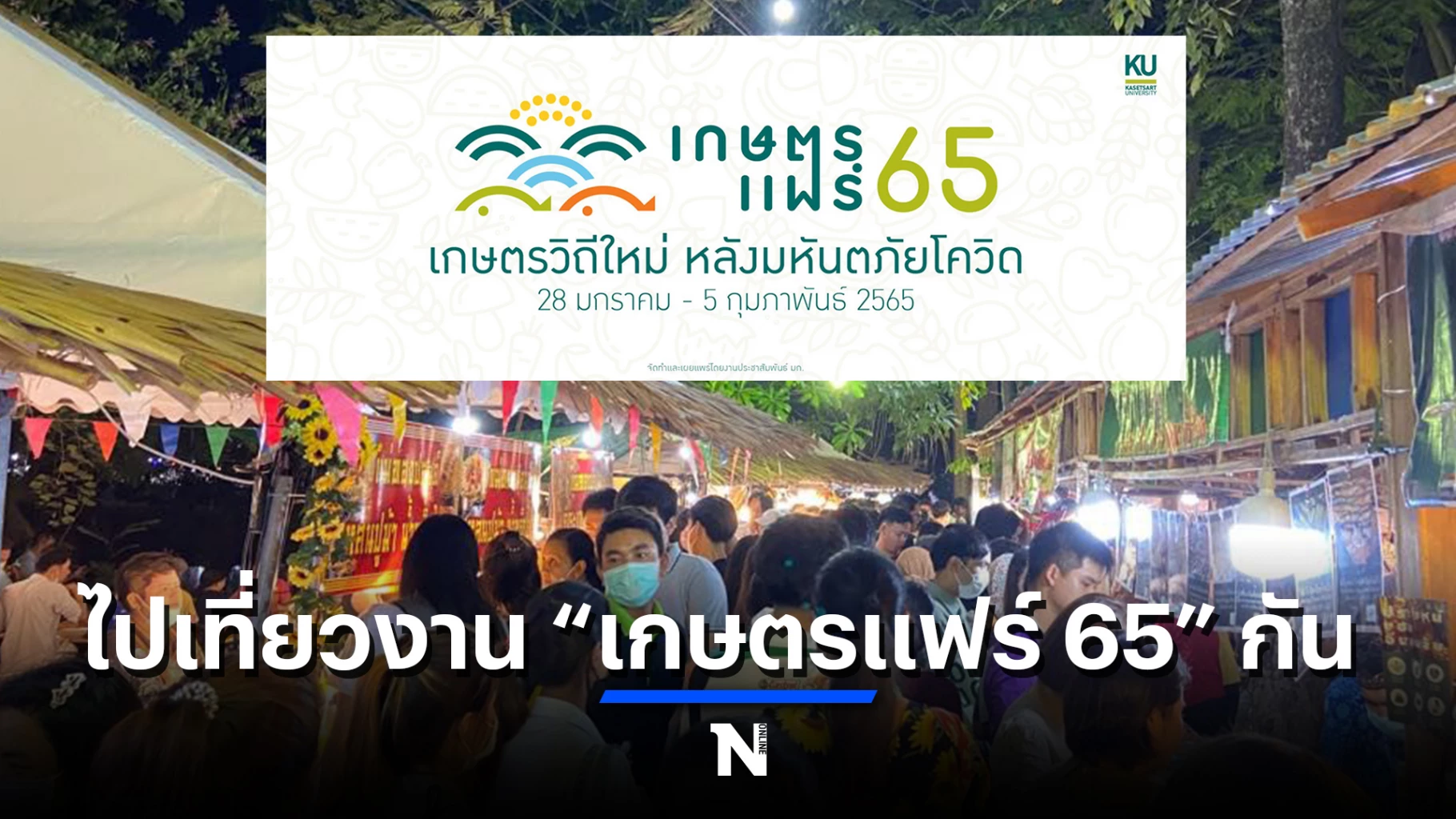 งานเกษตรแฟร์ 2565 “เกษตรวิถีใหม่ หลังมหันตภัยโควิด” กำหนดจัดขึ้นระหว่างวันที่ 28 มกราคม - 5 กุมภาพันธ์ 2565 ณ มหาวิทยาลัยเกษตรศาสตร์ วิทยาเขตบางเขน