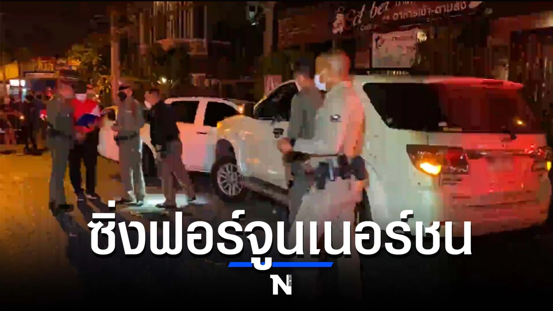 โดยที่เกิดเหตุพบว่าที่ริมถนนฝั่งตรงข้ามร้านไก่ใต้น้ำ มีรถโตโยต้าฟอร์จูนเนอร์ ทะเบียน ฆฉ 3272 กรุงเทพฯ ชนติดอยู่กับรถยนต์กระบะอีซูซุสี่ประตูสีขาวและรถกระบะก็ไปกระแทกกับรถเก๋งฮอนด้าซีวิคที่จอดอยู่ข้างหลังอีกคัน และที่กระจกหน้ารถฟอร์จูนเนอร์ด้านซ้ายมีรอยกระสุน1รูด้วย