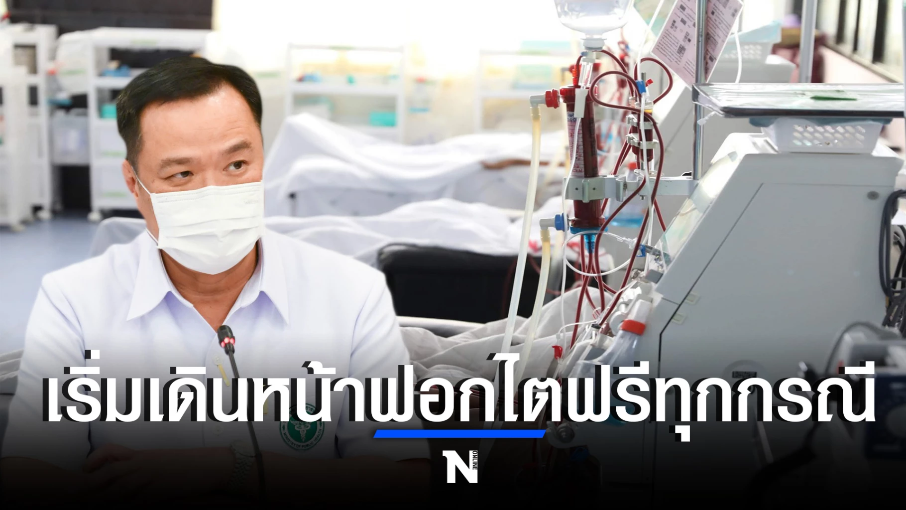 รองนายกรัฐมนตรี “อนุทิน” รายงาน ครม. ทราบ 1 ก.พ. นี้ เริ่มเดินหน้าโครงการให้สิทธิผู้ป่วยโรคไตที่ใช้สิทธิบัตรทองเลือกฟอกเลือกวิธีการบำบัดทดแทนไตได้ ไม่ว่าจะเป็นการฟอกเลือดด้วยเครื่องไตเทียมหรือการล้างไตผ่านทางช่องท้อง โดยตัดสินใจร่วมกันกับแพทย์ ฟรี ไม่เสียค่าใช้จ่าย