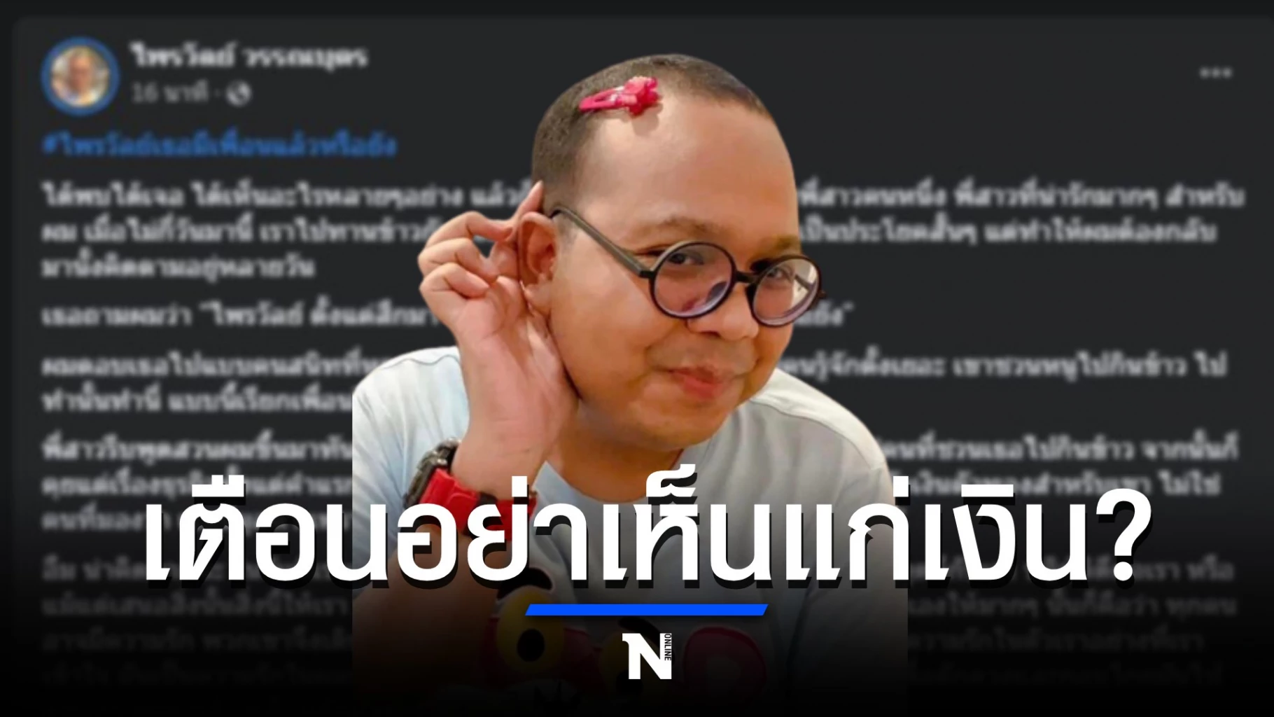 ล่าสุด “ไพรวัลย์ วรรณบุตร” อดีตพระนักเทศน์ และน้องคนสนิทของ “สมปอง” โพสต์ข้อความร่ายยาวว่า #ไพรวัลย์เธอมีเพื่อนแล้วหรือยัง ได้พบได้เจอ ได้เห็นอะไรหลายๆ อย่าง แล้วก็พลันให้นึกถึงคำพูดของพี่สาวคนหนึ่ง พี่สาวที่น่ารักมากๆ สำหรับผม เมื่อไม่กี่วันมานี้ เราไปทานข้าวกัน เธอถามผมขึ้นมาประโยคหนึ่ง เป็นประโยคสั้นๆ แต่ทำให้ผมต้องกลับมานั้งคิดตามอยู่หลายวัน