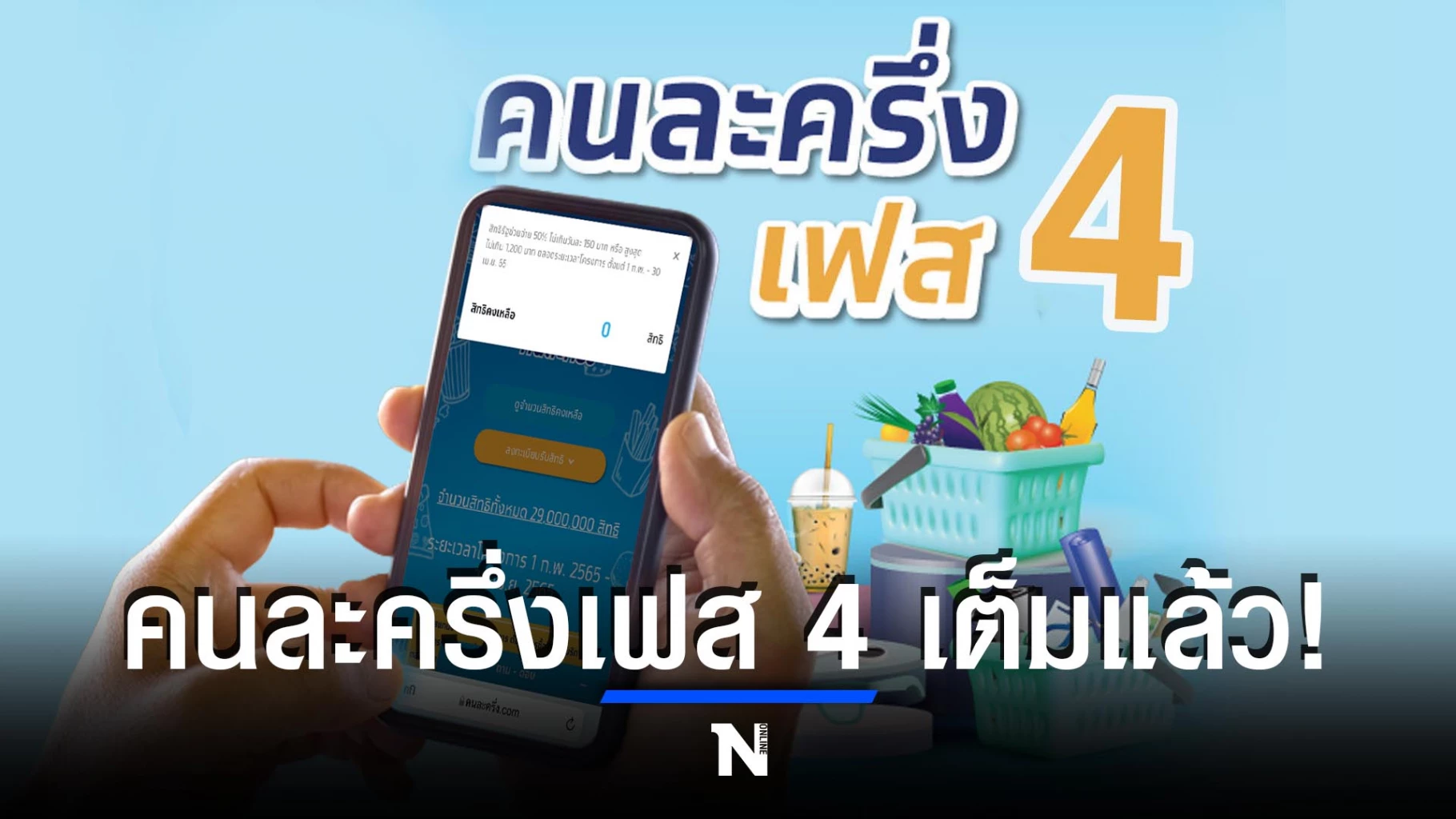 ล่าสุดเวลา 15.54 น. ประชาชนลงทะเบียน "คนละครึ่งเฟส 4" เต็มจำนวน 1 ล้านสิทธิแล้ว!