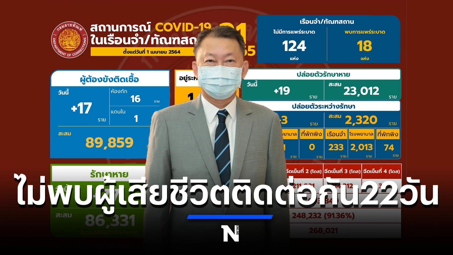 นายอายุตม์ สินธพพันธุ์ อธิบดีกรมราชทัณฑ์ เปิดเผยถึงสถานการณ์การแพร่ระบาดของโรคติดเชื้อไวรัสโควิด-19 ในเรือนจำและทัณฑสถาน (ข้อมูล ณ วันที่ 20 กุมภาพันธ์ 2565 เวลา 16.00 น.) พบผู้ต้องขังติดเชื้อรายใหม่ 17 ราย เป็นการพบในห้องแยกกักโรค16ราย และพบในเรือนจำสีแดง 1 ราย จึงมีผู้ติดเชื้อที่ยังอยู่ในการดูแลของกรมราชทัณฑ์ทั้งสิ้น 1,018 ราย เป็นกลุ่มสีเขียว 79.8% กลุ่มสีเหลือง 20% และกลุ่มสีแดง 0.2% มีผู้ติดเชื้อรักษาหายสะสม 86,331 ราย หรือ 96% ของผู้ติดเชื้อสะสมทั้งหมด 89,859 ราย โดยไม่มีรายงานการเสียชีวิตติดต่อกันเป็นวันที่ 22 จึงมีผู้เสียชีวิตสะสมอยู่ที่ 190 ราย หรือ 0.21% ของผู้ติดเชื้อสะสมทั้งหมด