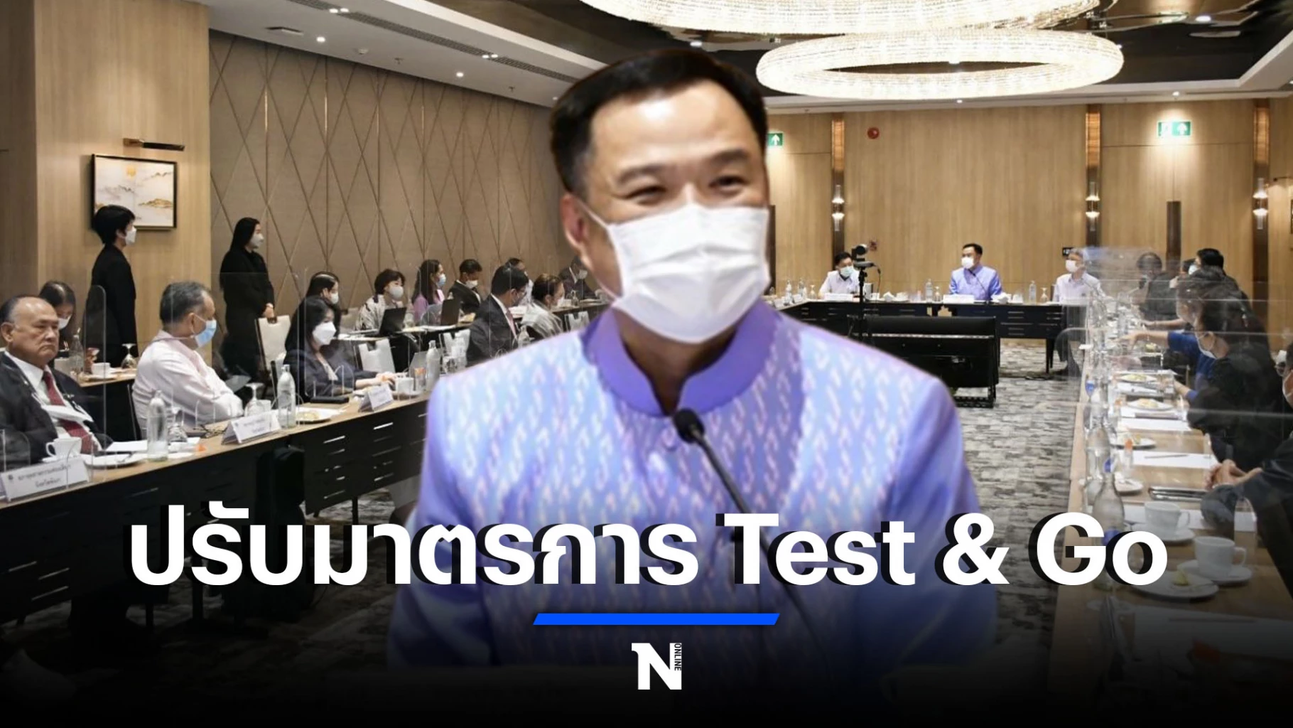 นายอนุทิน ชาญวีรกูล รองนายกรัฐมนตรีและรัฐมนตรีว่าการกระทรวงสาธารณสุข พร้อมด้วย นพ.ธงชัย เลิศวิไลรัตนพงศ์ รองปลัดกระทรวงสาธารณสุข นพ.โอภาส การย์กวินพงศ์ อธิบดีกรมควบคุมโรค นายยุทธศักดิ์ สุภสร ผู้ว่าการการท่องเที่ยวแห่งประเทศไทย ผู้บริหารจากกระทรวงสาธารณสุข กระทรวงมหาดไทย กระทรวงการท่องเที่ยวและกีฬา กระทรวงการต่างประเทศ สภาอุตสาหกรรมท่องเที่ยว สมาคมธุรกิจท่องเที่ยว สมาคมโรงแรม ร่วมหารือแนวทางการปรับมาตรการป้องกันโรคโควิด 19 สำหรับการเดินทางเข้าราชอาณาจักรประเภท Test & Go