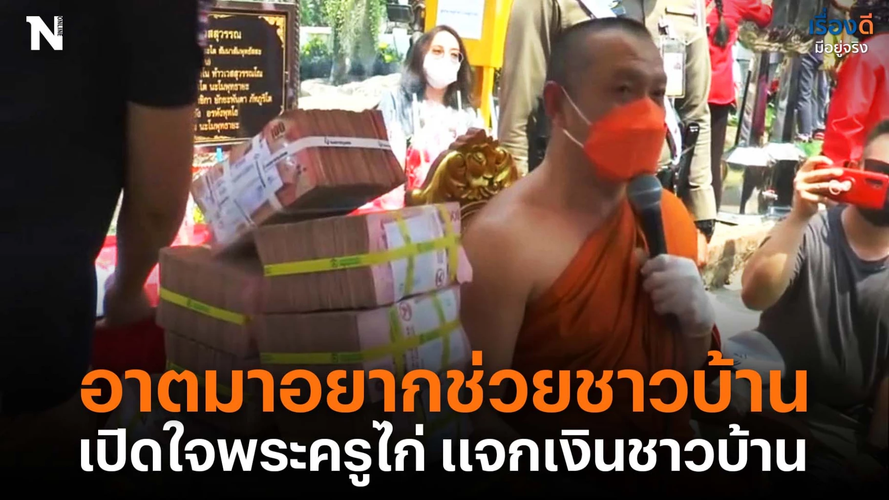 ต่อมาเวลา 13.00 น. ของวันที่ 5 มี.ค. 65 มีชาวบ้านกว่า 1,000 คน เข้าคิวต่อแถวยาวไปจนถึงหน้าประตูเข้า-ออกวัดด้านทิศตะวันออก เพื่อมารอบรับแจกเงินคนละ 500 บาท เป็นจำนวนเงิน 500,000 บาท ท่ามกลางแดดที่ร้อนอบอ้าว โดยมีชาวบ้านที่ทราบข่าวทยอยแห่มารับเงินอย่างต่อเนื่อง จนเงินที่เตรียมไว้หมด โดยเวลา 20.00 น. ของวันเดียวกัน พระครูไก่ได้โพสต์เฟซบุ๊กจะแจกเงินเพิ่มอีก 5 แสนบาท