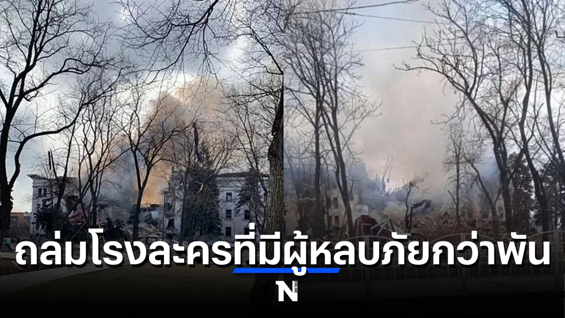 มีภาพถ่ายดาวเทียมที่แสดงให้เห็นว่าโรงละครในเมืองมาริอูโปล ที่หลายครอบครัวชาวยูเครนรวมกันไม่ต่ำกว่า 1,200 คน รวมทั้งผู้หญิงและเด็กป่วยเข้าไปหลบภัยสงคราม ซึ่งบริเวณพื้นทั้งด้านหน้าและด้านหลังมีตัวอักษรขนาดใหญ่เป็นภาษารัสเซียว่า "เด็ก" (CHILDREN) ปรากฎอยู่ แต่อีก 2 วันถัดมา โรงละครแห่งนี้กลับถูกทหารรัสเซียยิงปืนใหญ่ถล่มอย่างหนัก เจ้าหน้าที่ทางการยูเครนระบุว่าเป็นไปไม่ได้ที่จะทราบจำนวนของผู้เสียชีวิตหรือบาดเจ็บ เนื่องจากพื้นที่อยู่อาศัยของพลเรือนยังคงถูกระดมโจมตีอย่างหนักหน่วง ซึ่งหมายความว่าเจ้าหน้าที่กู้ภัยไม่สามารถเข้าไปช่วยเหลือผู้ที่ติดอยู่ในซากอาคารได้