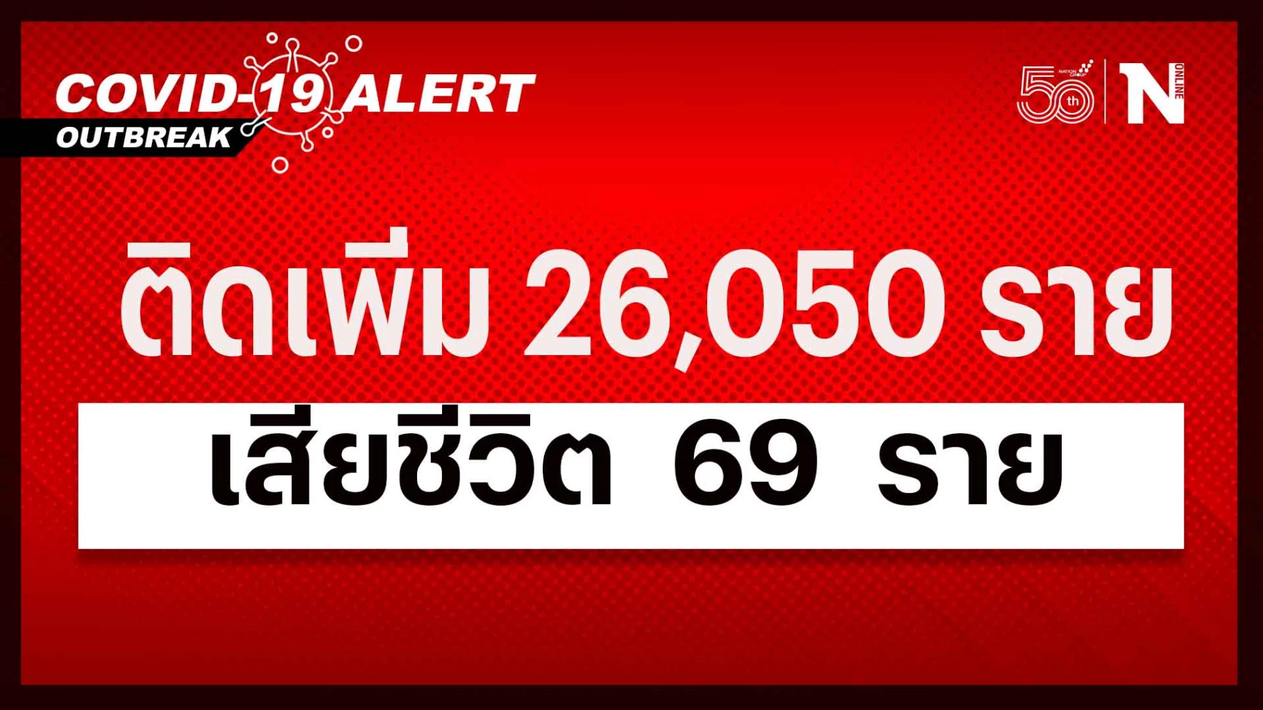 สถานการณ์โควิดยังน่าเป็นห่วง ยอดผู้ติดเชื้อวันนี้ 26,050 เสียชีวิต 69 ราย