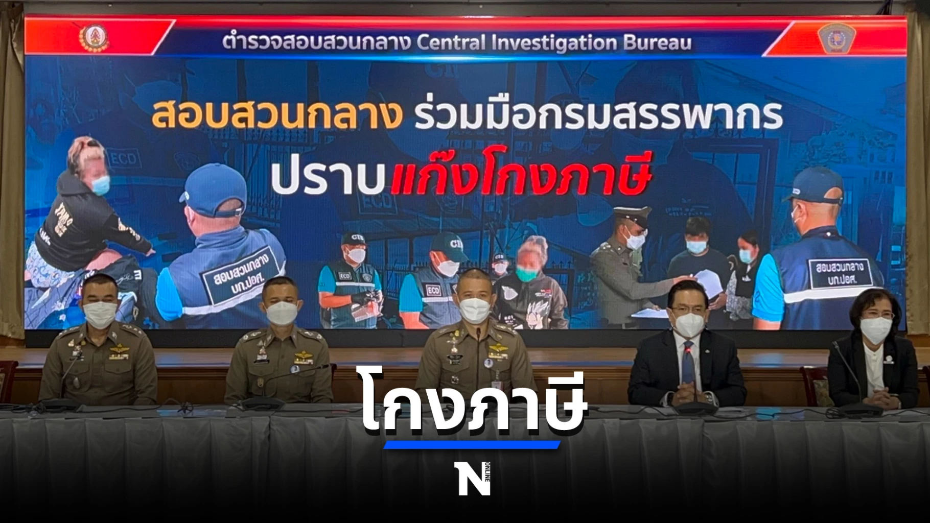 วันที่ 25 มี.ค.2565 "พล.ต.ท.จิรภพ ภูริเดช" ผู้บัญชาการตำรวจสอบสวนกลาง(ผบช.ก.) พล.ต.ต.พุฒิเดช บุญกระพือ ผู้บังคับการปราบปรามการกระทำความผิดเกี่ยวกับอาชญากรรมทางเศรษฐกิจ (ผบก.ปอศ.) พล.ต.ต.มนตรี เทศขัน ผู้บังคับการกองปราบปราม (ผบก.ป.) และ พล.ต.ต.ศารุติ แขวงโสภา ผู้บังคับการปราบปรามการกระทำความผิดเกี่ยวกับอาชญากรรมทางเทคโนโลยี (ผบก.ปอท.) ร่วมแถลงผลยุทธการ "สอบสวนกลาง ร่วมมือกรมสรรพากร ปราบแก๊งโกงภาษี” จับกุมผู้ต้องหาได้ 7 ราย ประกอบด้วย น.ส.กัติกา หงส์ยนต์ อายุ 24 ปี, น.ส.รุ่งฤดี ประจิตร อายุ 25 ปี, น.ส.วรรณวิสา โสภาพ อายุ 24 ปี , น.ส.ลีลาวดี สมรัตน์ อายุ 21 ปี, นายอริน พิรักษา อายุ 21 ปี และ น.ส.อัมรินทร์ อินทร์สุข อายุ 25 ปี พร้อมของกลาง สมุดบัญชีธนาคาร, โทรศัพท์มือถือ และอุปกรณ์คอมพิวเตอร์อีกหลายรายการ