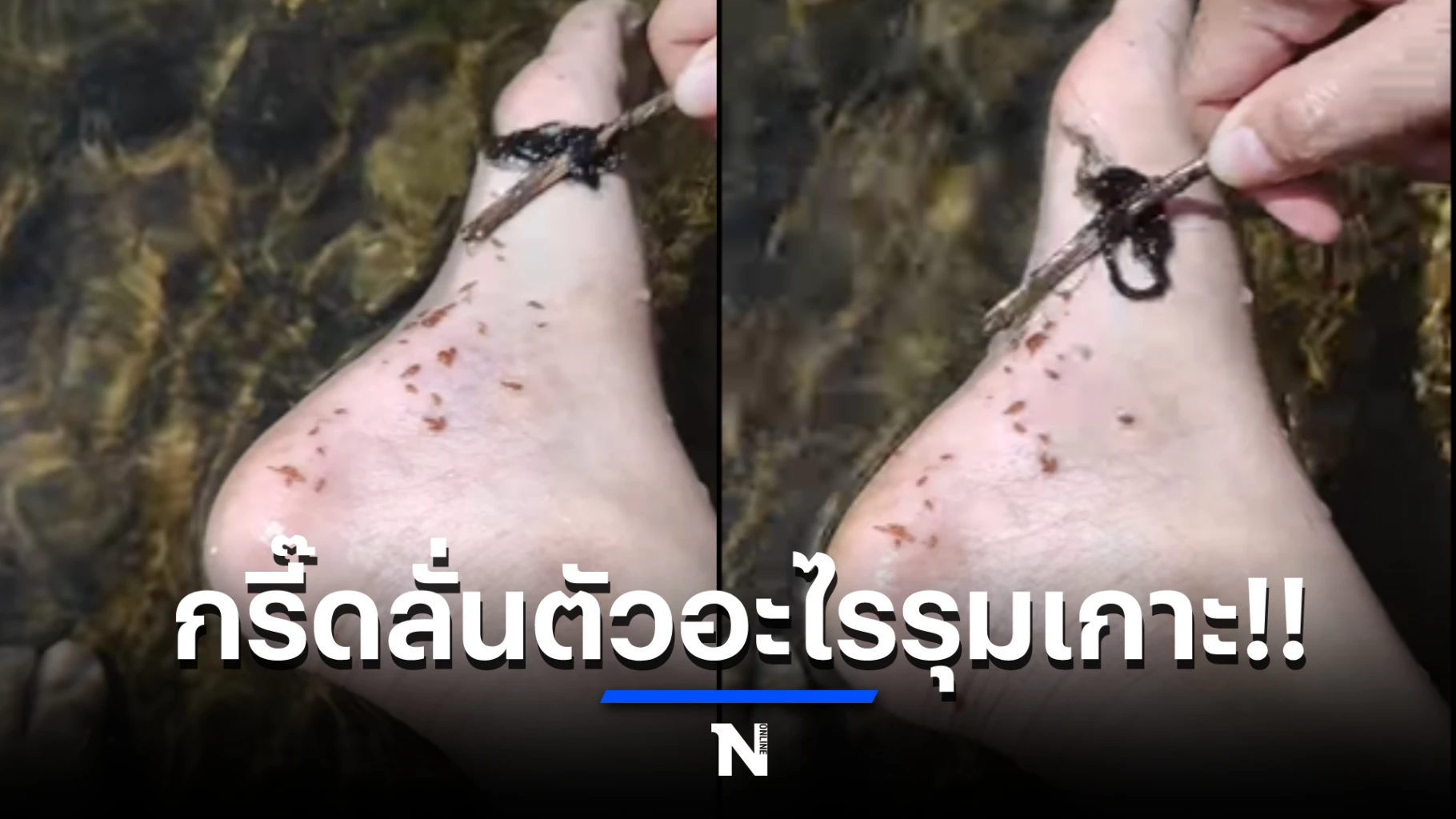 แล้วจู่ ๆ แฟนสาวได้ถูกสิ่งมีชีวิตประหลาดขนาดเล็กจำนวนมากเกาะเต็มที่ข้อเท้า จนร้องกรี๊ดต้องขึ้นจากน้ำแทบไม่ทัน โดยทีแรกเข้าใจว่าเป็นลูกปลาชักเกอร์