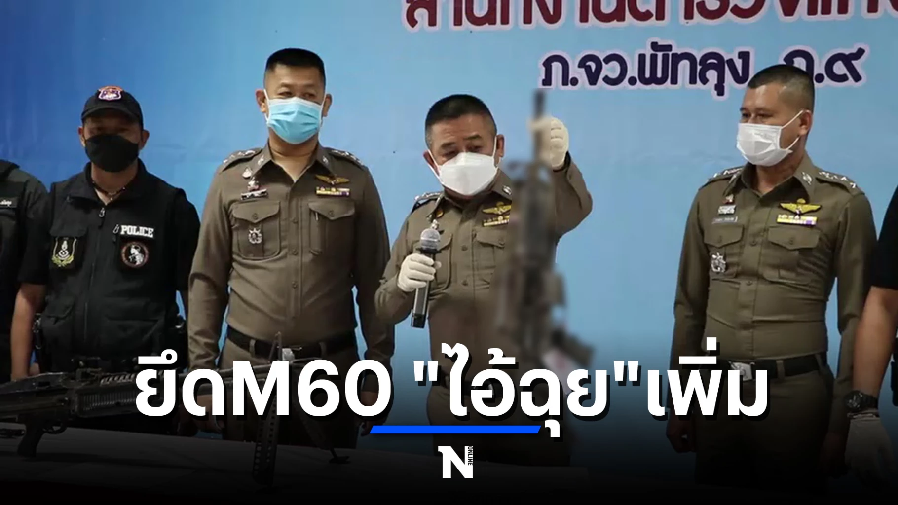สำหรับอาวุธปืนที่ตรวจยึดได้ประกอบด้วย อาวุธปืนกล M60 จำนวน 1 กระบอก ,อาวุธปืนยาว AK- 47 จำนวน 1 กระบอก พร้อมซองบรรจุกระสุนปืน AK-47 จำนวน 1 ซอง เครื่องกระสุนปืน ขนาด 7.62 มม จำนวน 4 นัด สามารถตรวจยึดได้ที่ บริเวณสะพาน หมูที่ 7 ตำบลทุ่งนารี อำเภอป่าบอน จังหวัดพัทลุง และ อาวุธปืนยาว M 16 A 1 จำนวน 1 กระบอก ซองบรรจุกระสุนปืน M 16 จำนวน 1 ซอง เครื่องกระสุนปืน ขนาด 5.56 มม. จำนวน 30 นัด เจ้าหน้าที่ตำรวจสามารถตรวจยึดได้ที่ ริมคลองลำเบ็ด หมู่ที่ 6 ตำบลร่มเมือง อำเภอเมือง จังหวัดพัทลุง