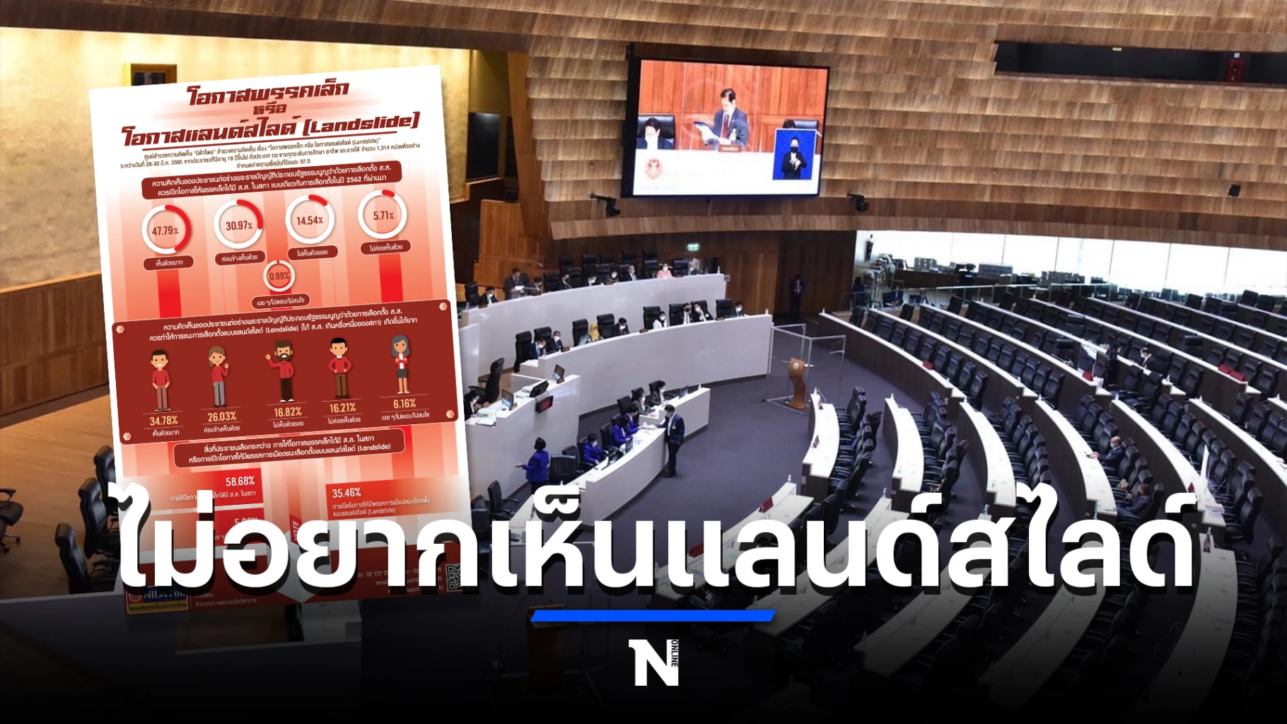 ด้านความคิดเห็นของประชาชนต่อร่างพระราชบัญญัติประกอบรัฐธรรมนูญว่าด้วยการเลือกตั้ง ส.ส. ควรทำให้การชนะการเลือกตั้งแบบแลนด์สไลด์ (Landslide) (ได้เสียง ส.ส. เกินครึ่งหนึ่งของสภา) เกิดขึ้นได้ยาก พบว่า ตัวอย่าง ร้อยละ 34.78 ระบุว่า เห็นด้วยมาก รองลงมา ร้อยละ 26.03 ระบุว่า ค่อนข้างเห็นด้วย ร้อยละ 16.82 ระบุว่า ไม่เห็นด้วยเลย ร้อยละ 16.21 ระบุว่า ไม่ค่อยเห็นด้วย และร้อยละ 6.16 ระบุว่า เฉย ๆ/ไม่ตอบ/ไม่สนใจ
