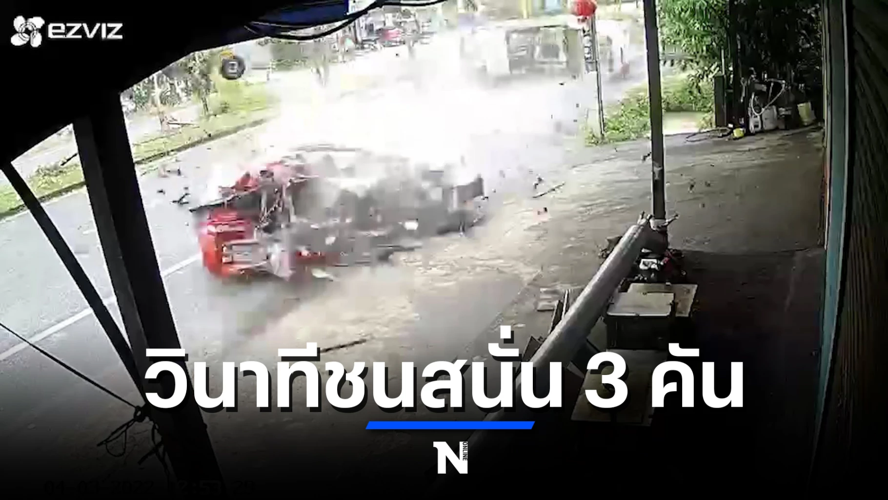 ซึ่งภาพจากกล้องวงจรปิดบันทึกภาพเหตุการณ์นาทีชีวิตที่เป็นส่วนหนึ่งของอุบัติเหตุเอาไว้ได้ เป็นภาพขณะรถกระบะตู้ทึบขนส่งสินค้าเหินข้ามเกาะกลางถนนพุ่งชนประสานงากับรถเก๋งที่วิ่งสวนมาอย่างรุนแรง ทำให้รถกระบะพลิกตะแคงข้างอยู่บนถนนส่วนรถเก๋งหมุนคว้างไปชนกับร้านค้าที่อยู่ริมถนน