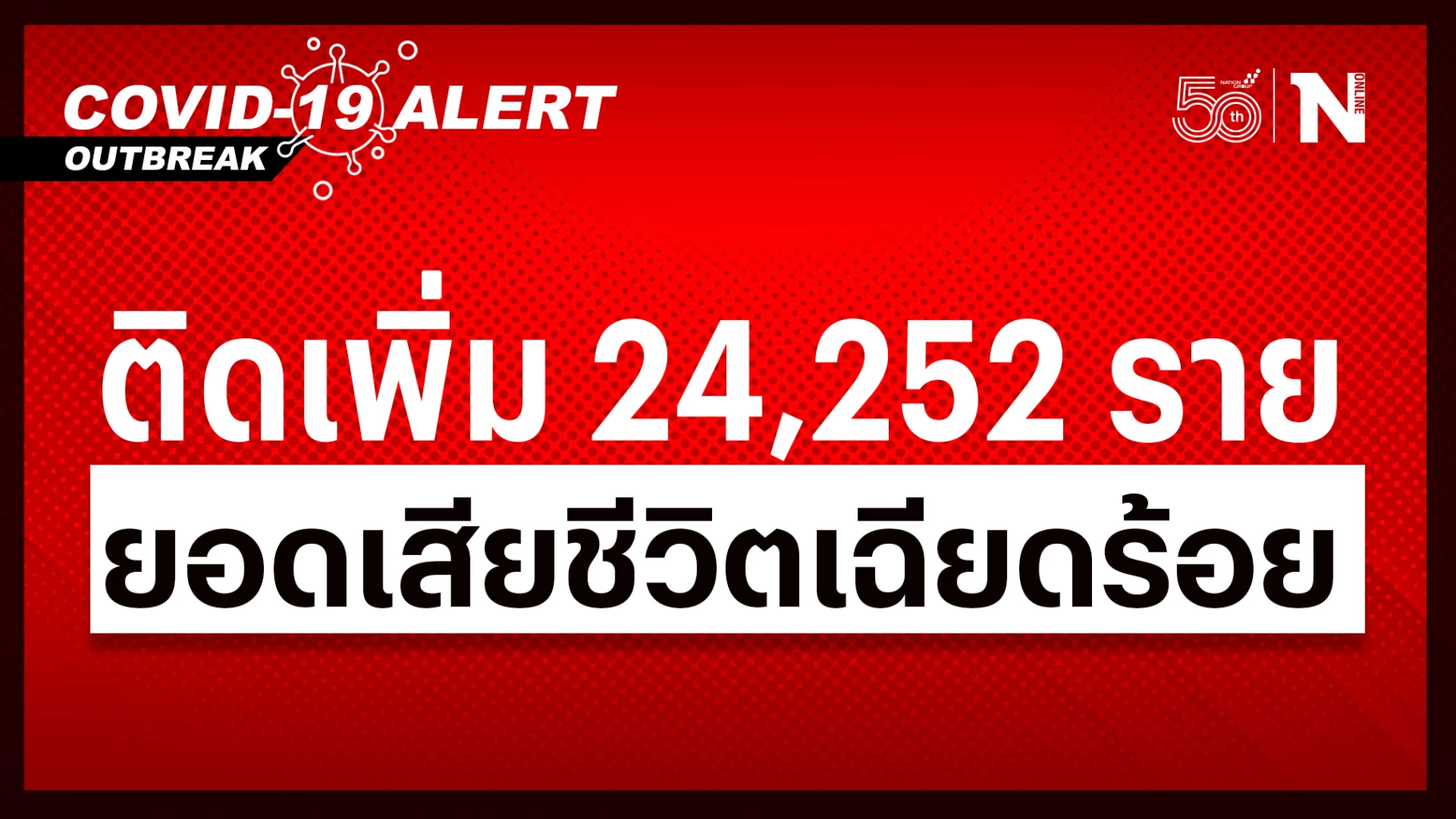 สถานการณ์โควิด-19 ยังน่าห่วง ยอดติดเชื้อเพิ่ม 24,252 ราย เสียชีวิตเฉียดร้อย