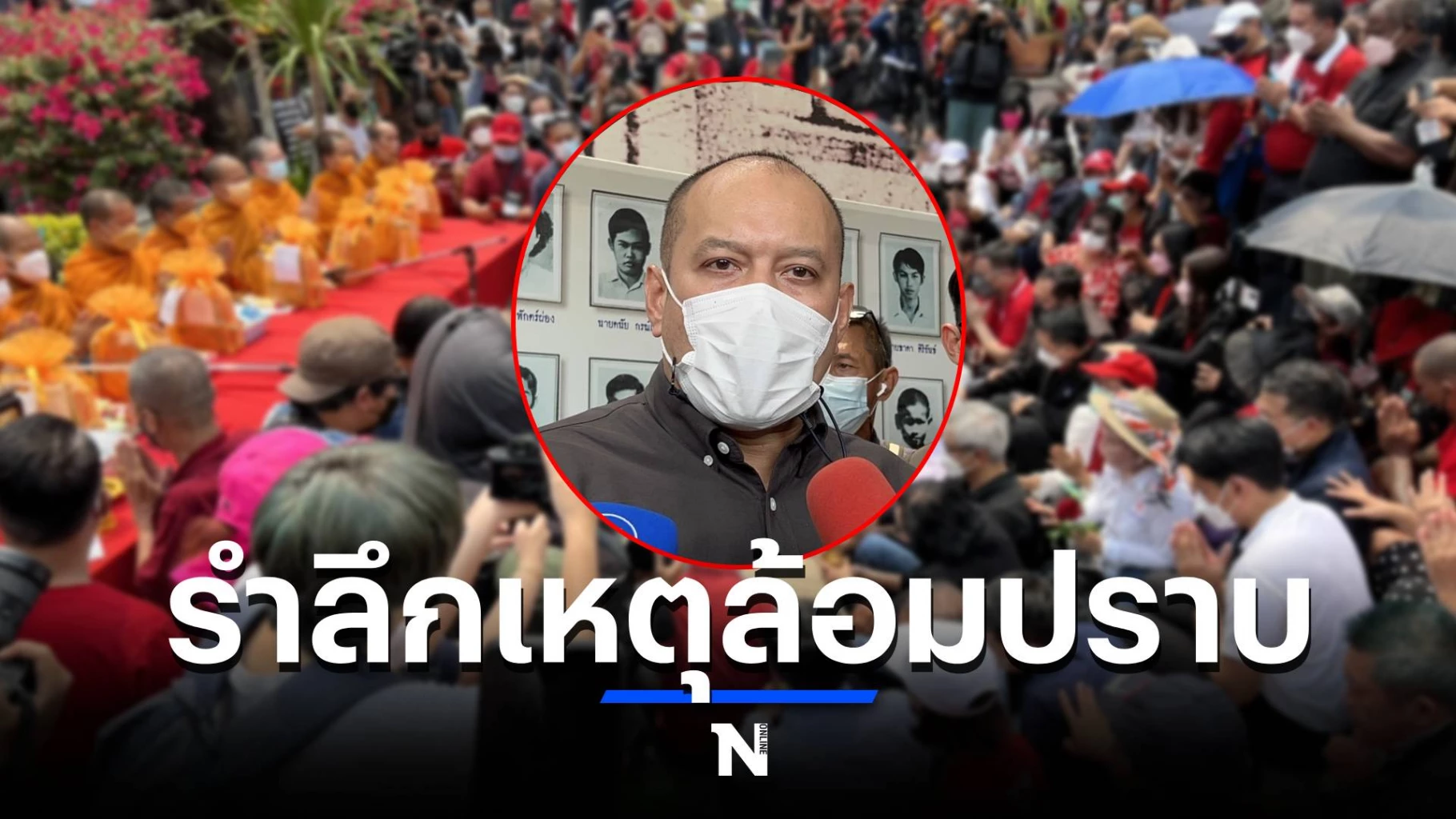 กิจกรรมเมื่อเวลา 13.00 น.มีการถวายสังฆทาน จากนั้นกลุ่มมวลชนพรรคการเมือง วางพวงหรีดและดอกไม้ และกล่าวรำลึกเหตุการณ์ โดยนายณัฐวุฒิ ระบุว่า การจัดกิจกรรมในวันนี้ เพื่อลำรึกความสูญเสียของประชาชน จากการล้อมปราบของเจ้าหน้าที่ ซึ่งมีกิจกรรมกันทุกปี เพื่อประกาศต่อสังคมว่า โศกนาฎกรรมดังกล่าว ยังไม่มีการชำระความจริง