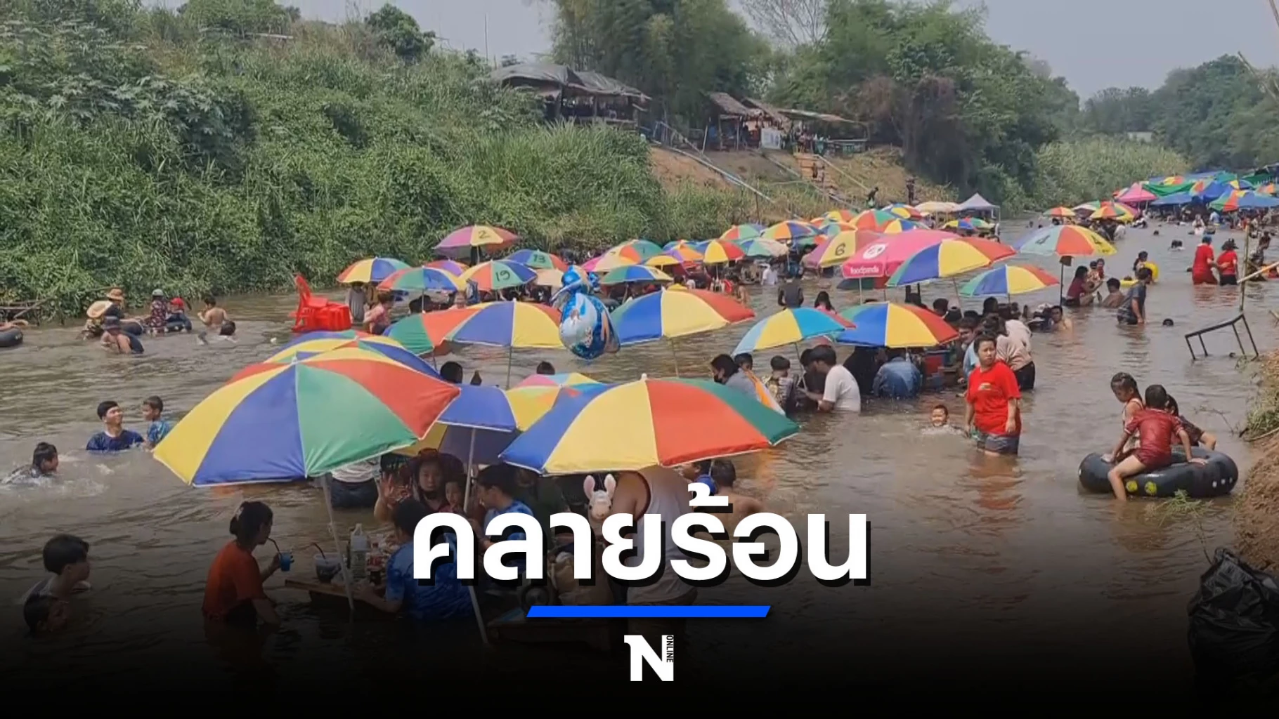 ชาวเชียงใหม่คลายร้อนลงเล่นน้ำในแม่ปิง