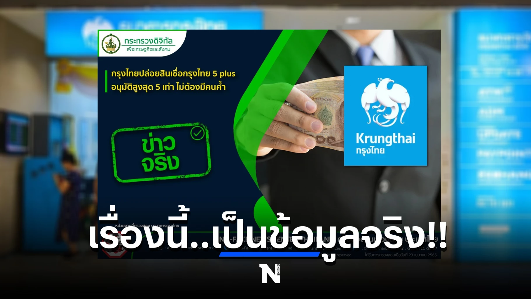 จากประเด็นแชร์สนั่นตามสื่อออนไลน์ และมีข่าวปรากฏในสื่อต่างๆ เกี่ยวกับประเด็นร้อนล่าสุด ธนาคารกรุงไทยปล่อยสินเชื่อกรุงไทย 5 plus อนุมัติสูงสุด 5 เท่า ไม่ต้องมีคนค้ำ