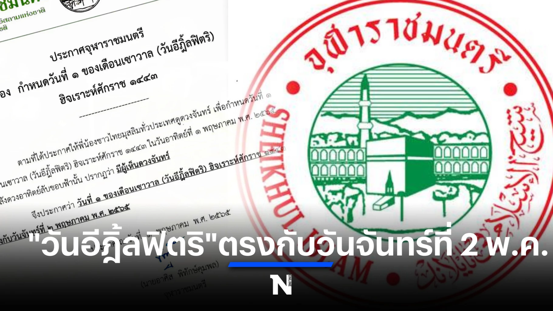 "สำนักจุฬาราชมนตรี" ออกประกาศศเรื่อง กำหนดวันที่ ๑ ของเดือนเซาวาล (วันอีฎิ้ลฟิตริ) ฮิจเราะห์ศักราช ๑๔๔๓