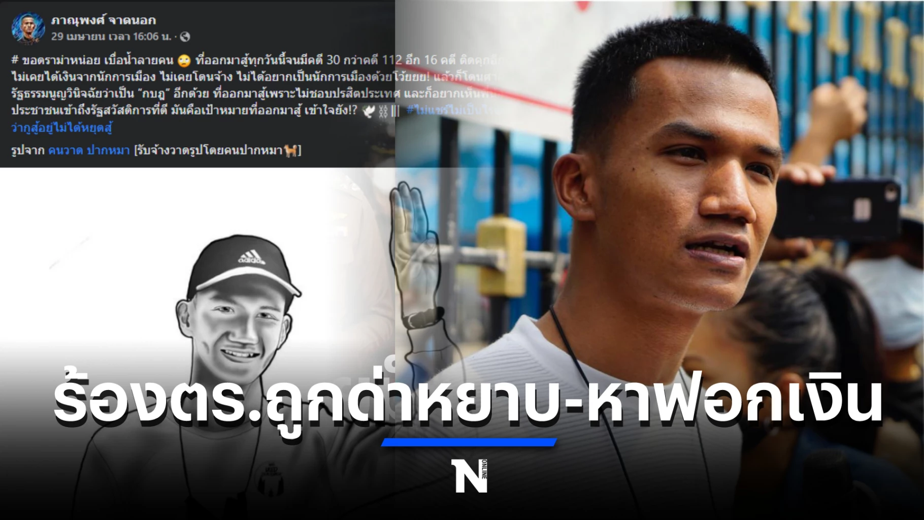 วันนี้ (2 พ.ค.) ที่ สน.วังทองหลาง ร.ต.อ.ไกรสร อินปิน รอง สว.(สอบสวน) รับแจ้งความจากนายภาณุพงศ์ จาดนอก หรือ ไมค์ ระยอง แกนนำกลุ่มราษฎร ให้ดำเนินคดีกับผู้ใช้เฟซบุ๊ก ชื่อ แสงเดือน เพิ่ม พลเมือง ข้อหาหมิ่นประมาทโดยการโฆษณา