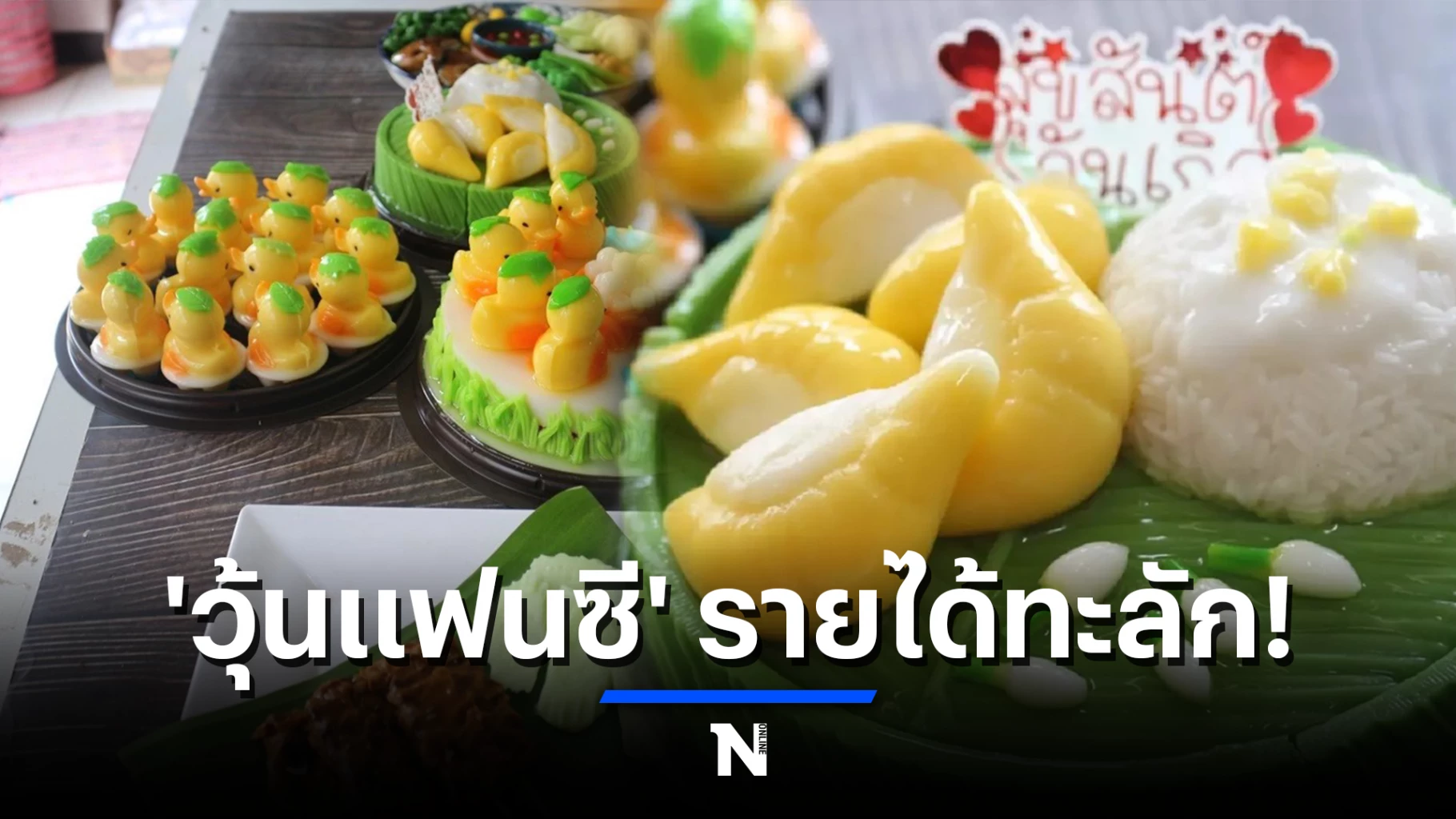 นายธนาเศรษฐ์ โภชน์อุดมสิน หรือครูก้อง อายุ 42 ปี เจ้าของแบรนด์ร้านวุ้นมะพร้าวทองพูน เล่าให้ฟังว่า ตนเองเป็นข้าราชการครูวิชาสังคม โรงเรียนชุมชน 12 ท่าตาลประชาสฤษฏ์ วันหนึ่งก็อยากมีรายได้เสริมจึงนำเอาสูตรวุ้นกะทิของครอบครัวที่ปกติปู่ย่า ตายาย ทำขายอยู่แล้ว มาประยุกต์เพิ่มไอเดียความเป็นแฟนซีเข้าไปเพื่อเพิ่มมูลค่าเพิ่มให้กับวุ้นกะทิธรรมดา จนกลายเป็นเค้กวุ้นกะทิแฟนซี มีให้เลือกมากมาย มีทั้งเมนูอาหารคาวหวาน อาทิ ทั้งเมนูน้ำพริกกะปิปลาทู ขนมจีนน้ำยาตีนไก่ กุ้งแช่น้ำปลา ข้าวเหนียวทุเรียน ข้าวเหนียวหมูปิ้ง และฝูงเป็ดเริงร่า เปิดขายมาได้ประมาณ 5 เดือน ยอดขายสั่งจองดีมากๆ โดยเฉพาะเมนูอาหารคาวอย่าง น้ำพริกกะปิ ขนมจีนน้ำยาตีนไก่ เดือนหนึ่งออกไม่ต่ำกว่าเมนูละ 50 ปอนด์เลยทีเดียว