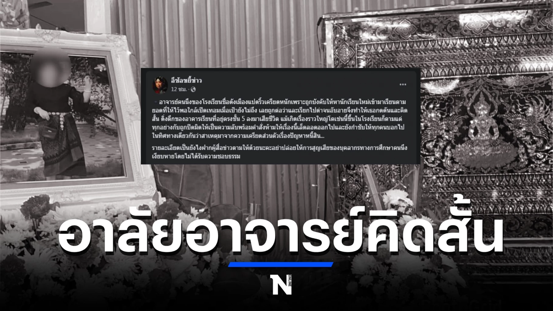 โดยทางเพจ ระบุข้อความว่า อาจารย์คนหนึ่งของโรงเรียนชื่อดังเมืองแปดริ้ว เครียดหนัก เพราะถูกบังคับให้หานักเรียนใหม่ เข้ามาเรียนตามยอดที่ให้ไว้ พอใกล้เปิดเทอม เมื่อเป้ายังไม่ถึง เลยถูกต่อว่าและเรียกไปด่าจนอับอาย ทำให้เธอกดดันและคิดสั้น ดิ่งตึกของอาคารเรียนที่อยู่ตรงชั้น 5 ลงมาเสียชีวิต